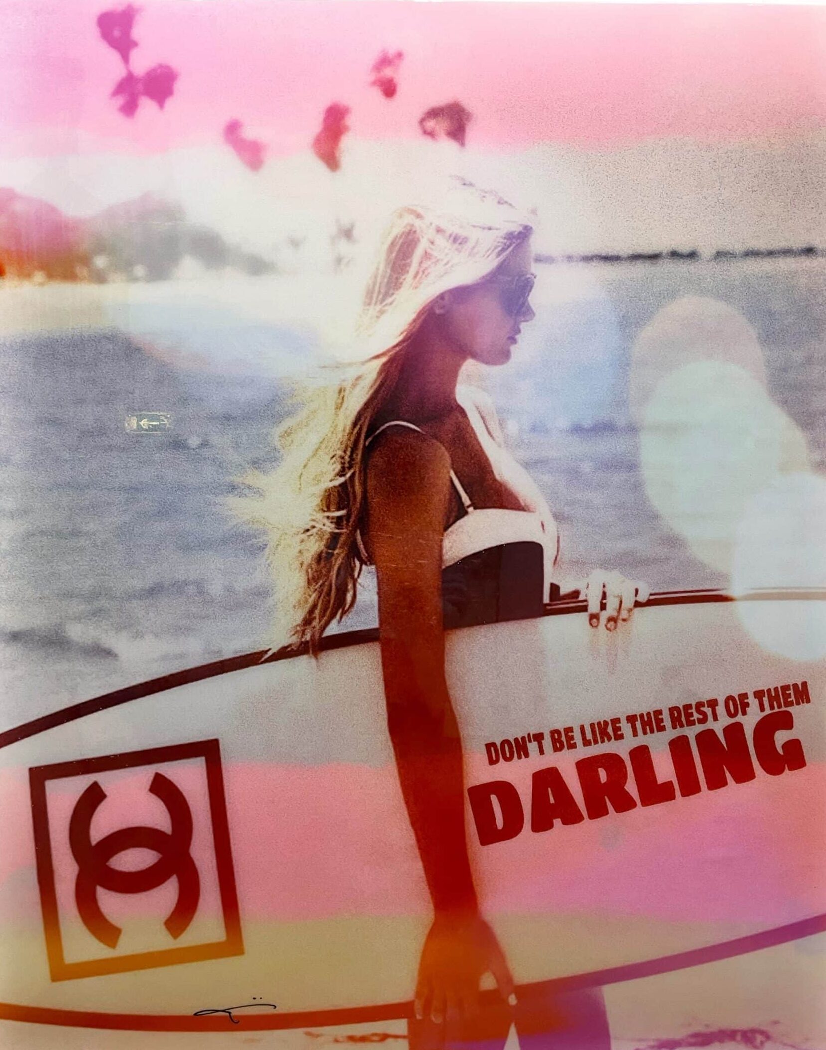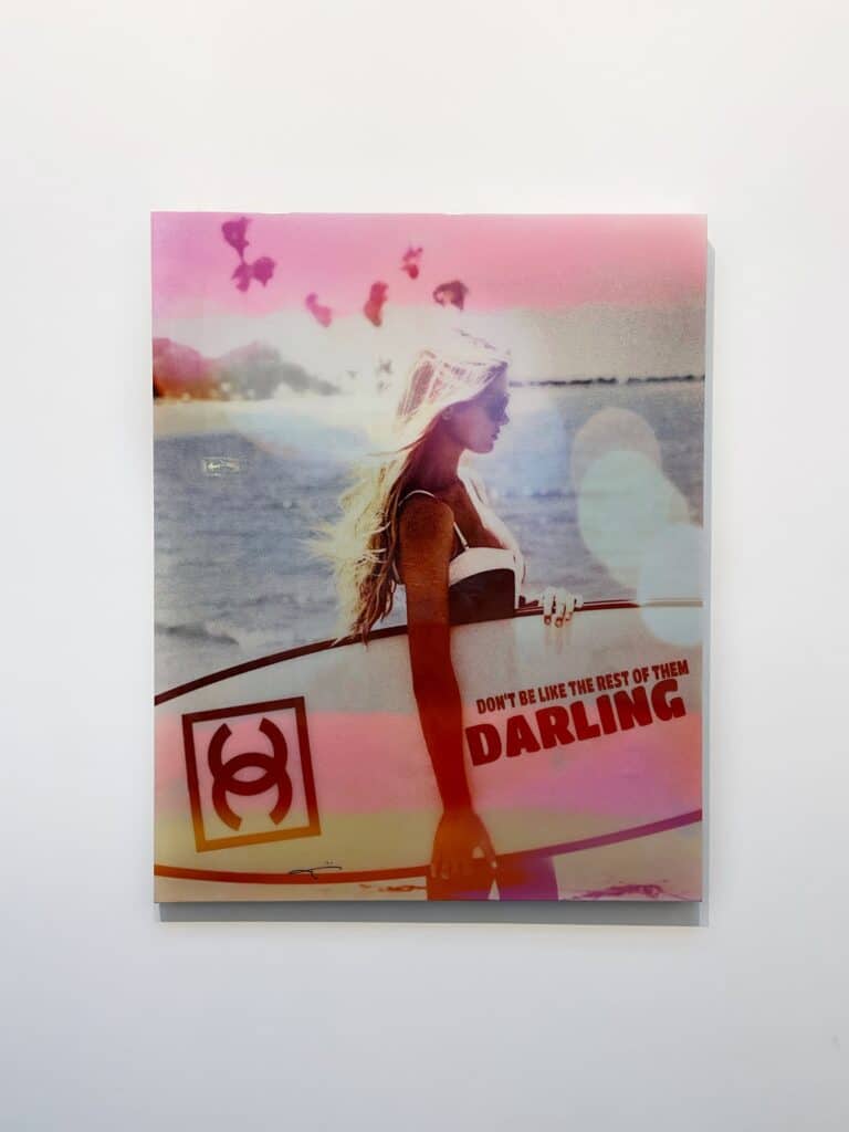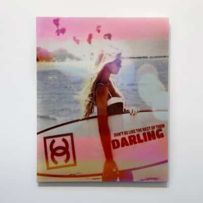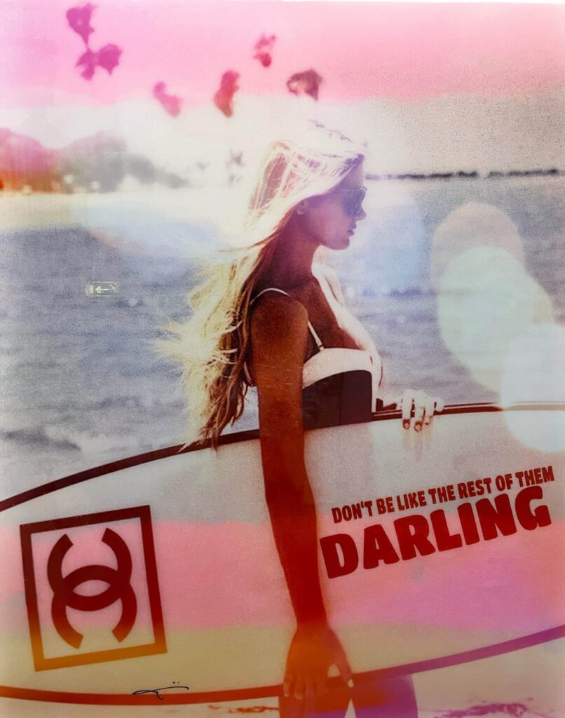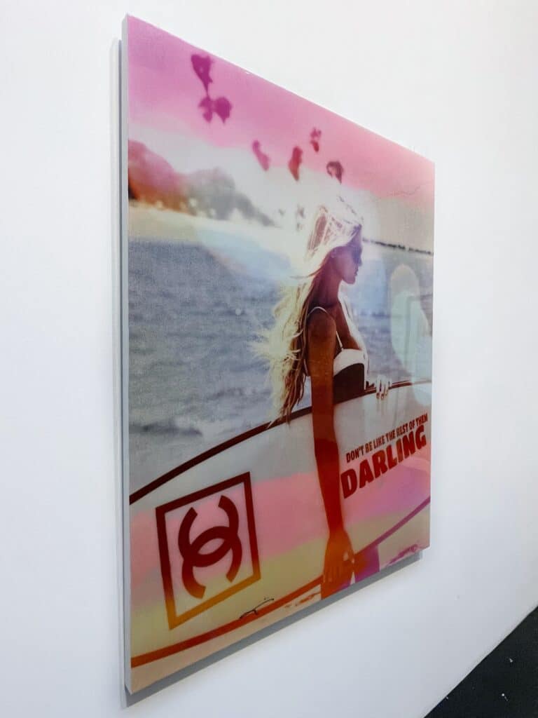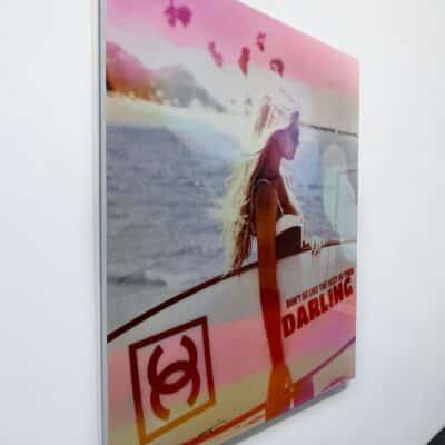 Zomers mixed media monotype (2021) op linnen van de befaamde Duitse kunstenaar Jörg Döring. Het werk is door de kunstenaar opgebouwd uit fraaie heldere kleuren gecombineerd met foto’s, ruw geschilderde oppervlaktes, typografie en geschreven teksten. Het werk is met epoxy afgewerkt. De monotypes zijn in een volledig met de hand vervaardigde oplage vervaardigd waardoor elk stuk volledig uniek is.