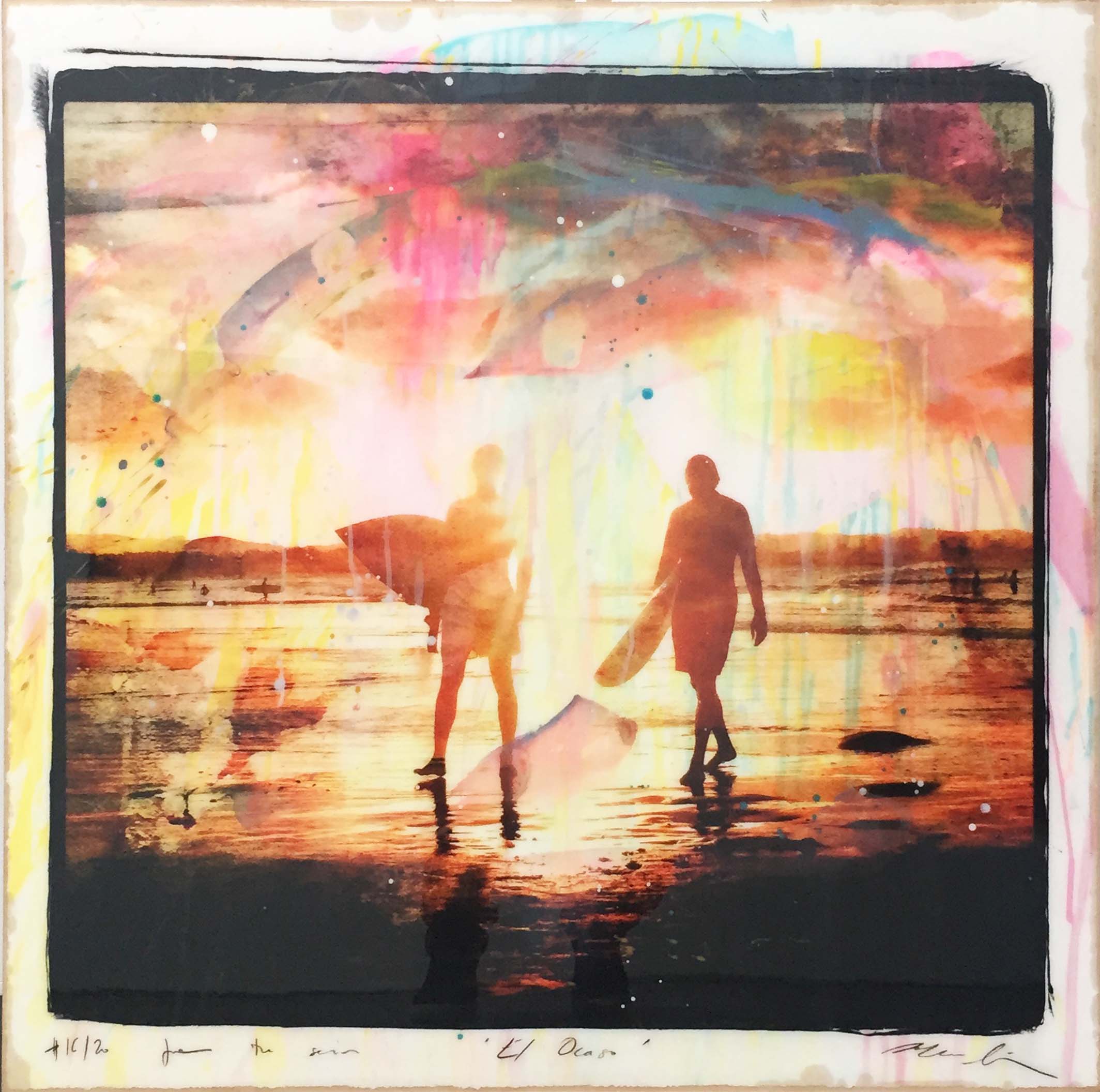 Het werk betreft een originele foto afdruk, door Sanchez op paneel verwerkt en met bovengenoemde technieken met de hand bewerkt en daarna in epoxy afgegoten, wat het geheel een prachtige authentieke en warme uitstraling geeft.