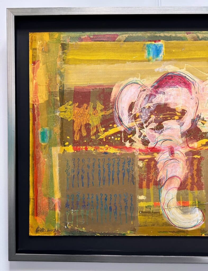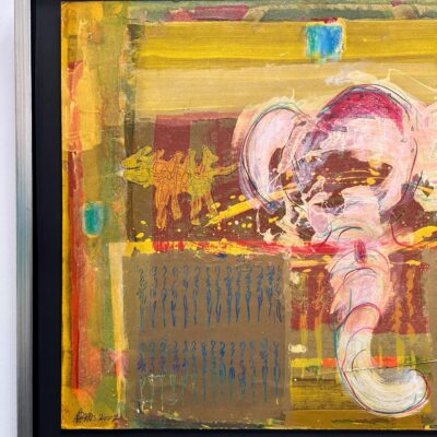 Prachtig origineel werk van Ad Arma, winnaar van de prestigieuze “Kunstenaar van het jaar”” verkiezing 2007. Het stuk is 1 van een serie originele werken die de kunstenaar vervaardigde tijdens zijn verblijf in India in het voorjaar van 2008. De stukken zijn prachtig van detail en vol van fraaie fijne nuances in het heldere kleurgebruik! Om het geheel compleet te maken zijn de stukken ingelijst in mooie exclusieve bijpassende handgemaakte zilverkleurige lijsten.