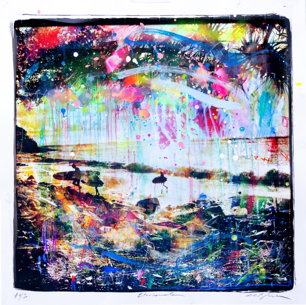 Het werk betreft een originele foto afdruk, door Sanchez op paneel verwerkt en met bovengenoemde technieken met de hand bewerkt en daarna in epoxy afgegoten, wat het geheel een prachtige authentieke en warme uitstraling geeft.