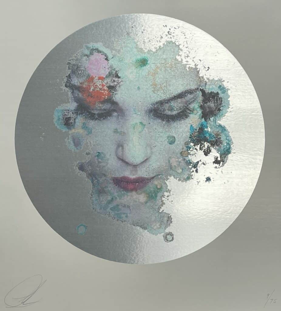 Archival flatbed print & screen print on metalic silver paper.