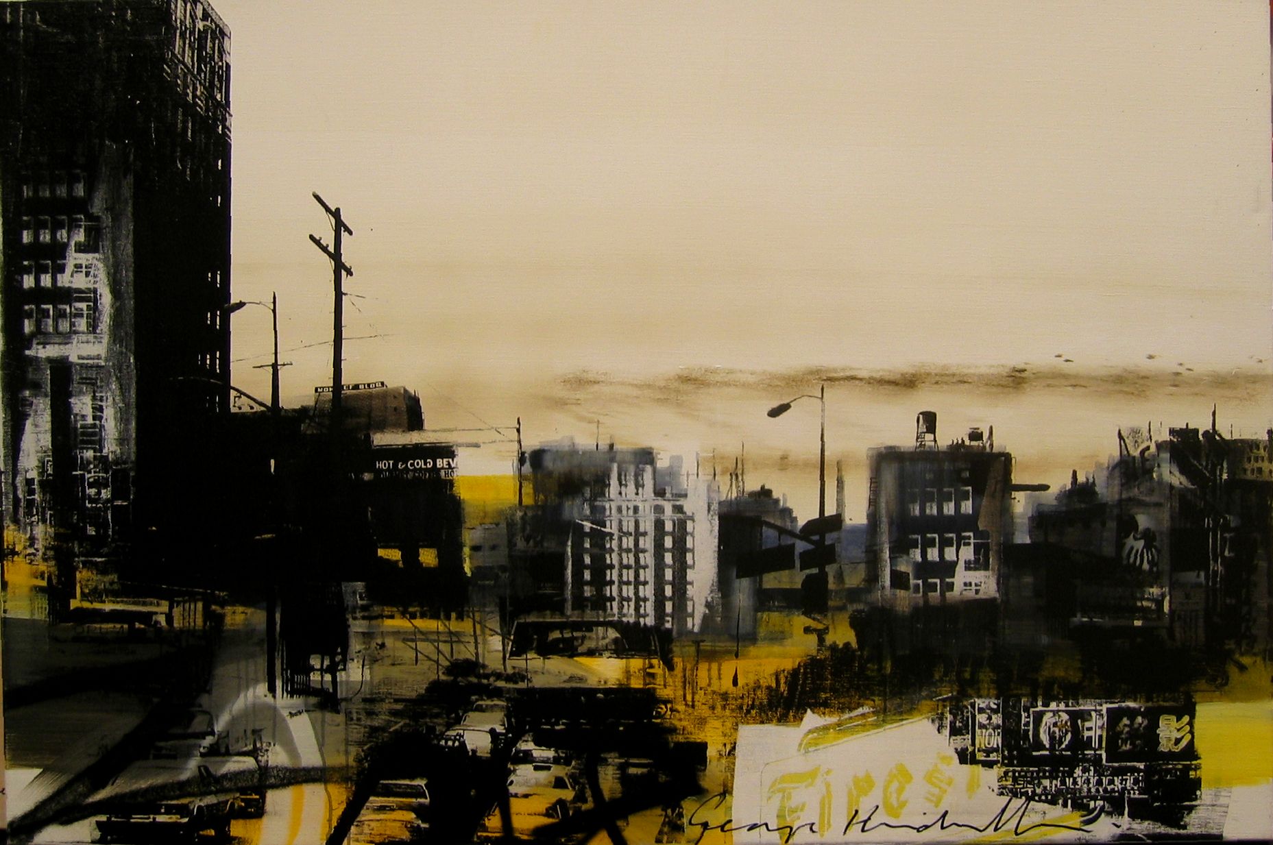 Een prachtig origineel werk op linnen van de Amsterdamse kunstenaar George Heidweiller ut 2007. Het werk is op stevig linnen doek vervaardigd. De kunstenaar heeft gebruik gemaakt van een combinatie van diverse gemengde technieken, sjablonen, airbrush, zeefdrukrasters, acryl en inkten. De mix van technieken is al even dynamisch als het eindresultaat en het zijn weer fantastische stukken om naar te kijken.