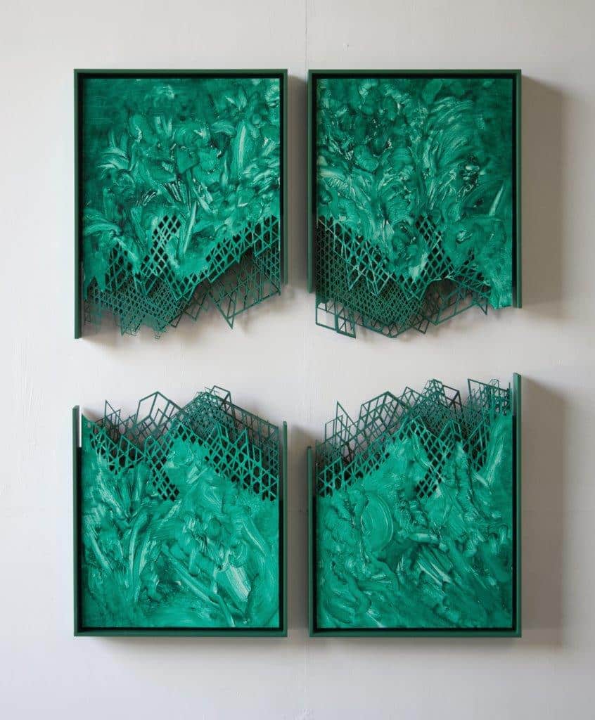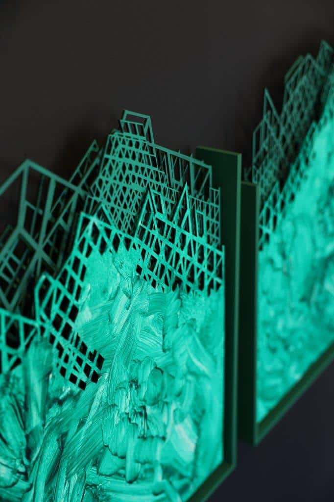 The handcrafted artworks in Daniël Martin’s Laser Cut series are built up in layers from compositions of hand-painted, laser-cut wooden elements. With these works, the artist explores the refined depth hidden beneath the apparent surface. By ingeniously combining 3D research, painting techniques, and the ever-evolving possibilities of material manipulation, Daniël Martin captivates the viewer with a unique series that surprises with an intriguing play of light, depth, perspective, and geometry.
