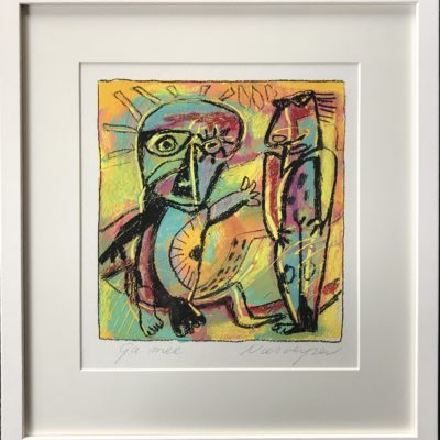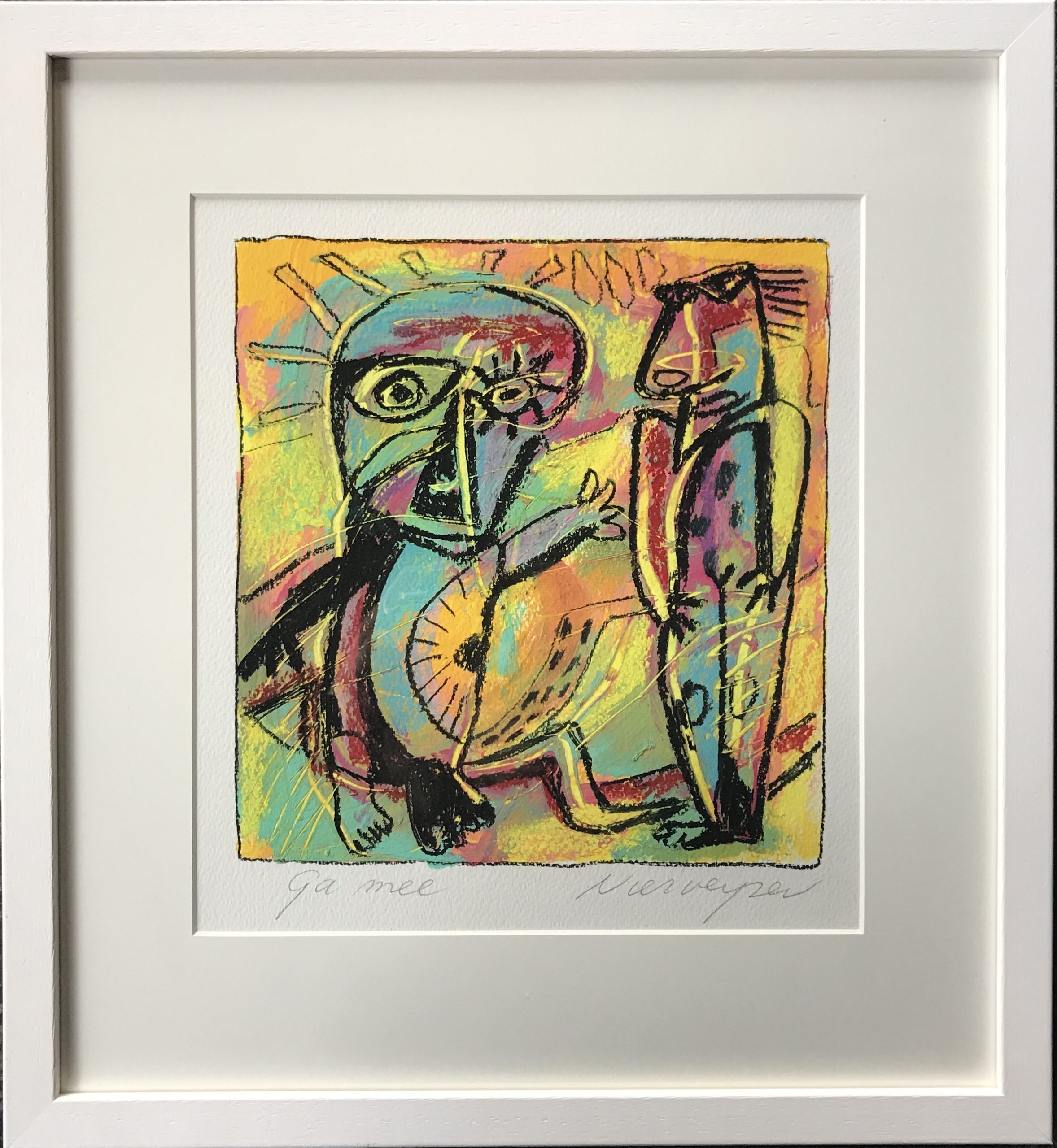 Mooie gouach van Henk Vierveijzer. Naast zijn originele doeken leeft de kunstenaar zich wel eens uit op fraaie dikke vellen papier. De dikke lagen verf en vetkrijt zorgen bij deze werken voor een heel bijzondere kleurspel.