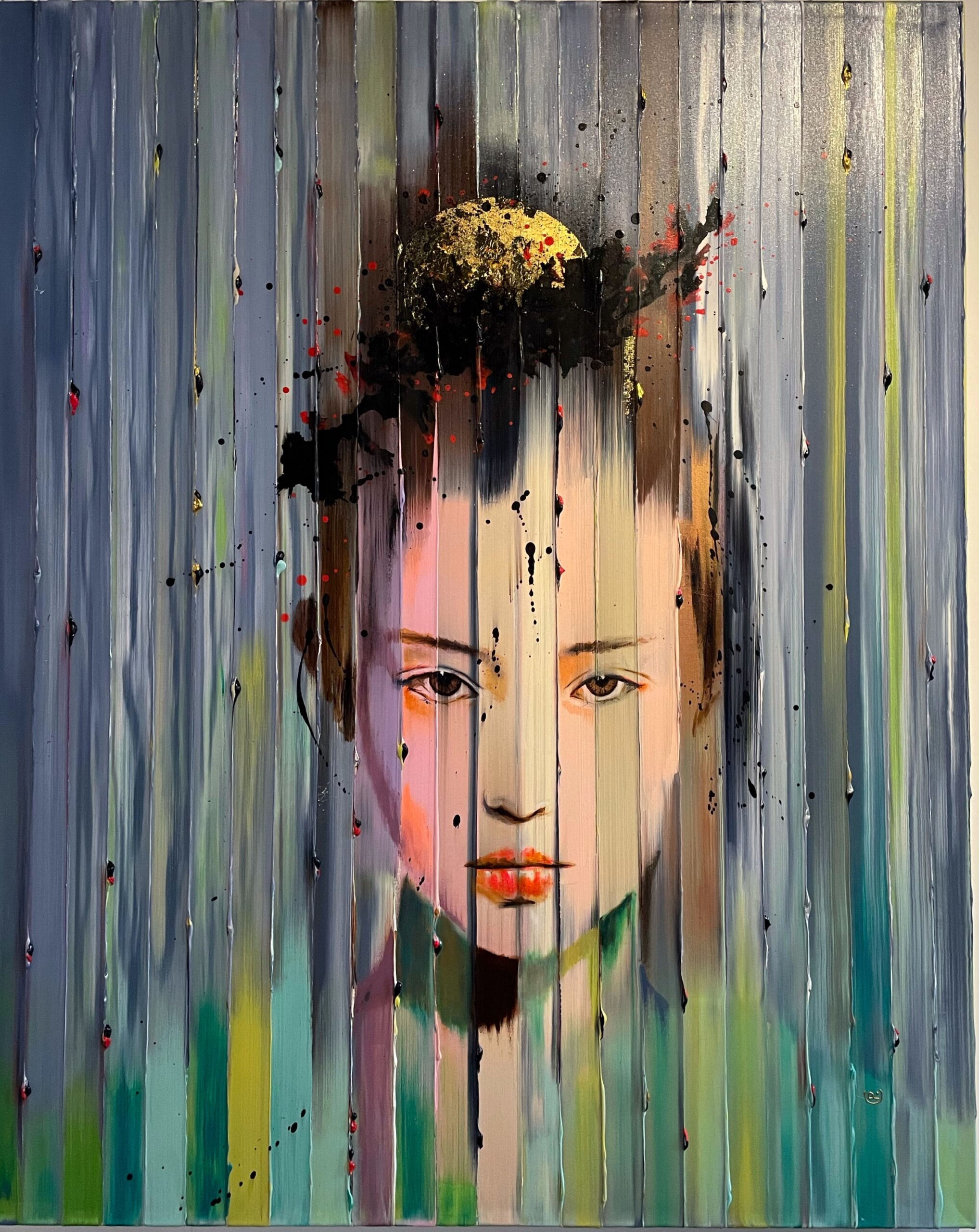 In her signature series “Shadow colors”, she reveals the colors of shadows. Here they become the main subject, come to the fore, take on matter. In ‘Geisha’ the subject and its shadow are mixed, confused, they rub off one on the other by creating relief. As a colourist, Petraud uses intense, frank and saturated colors.