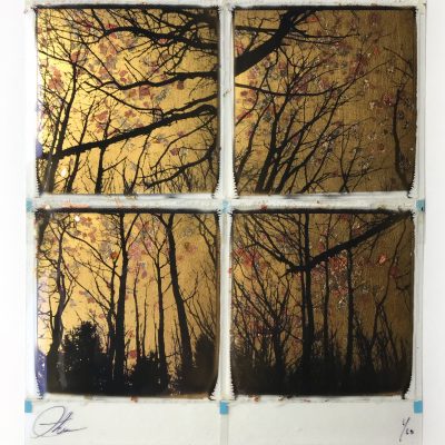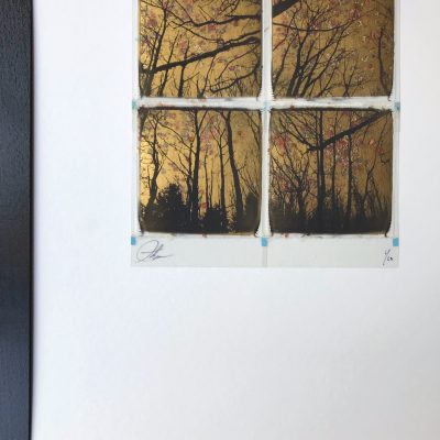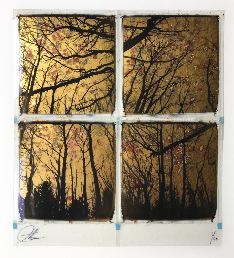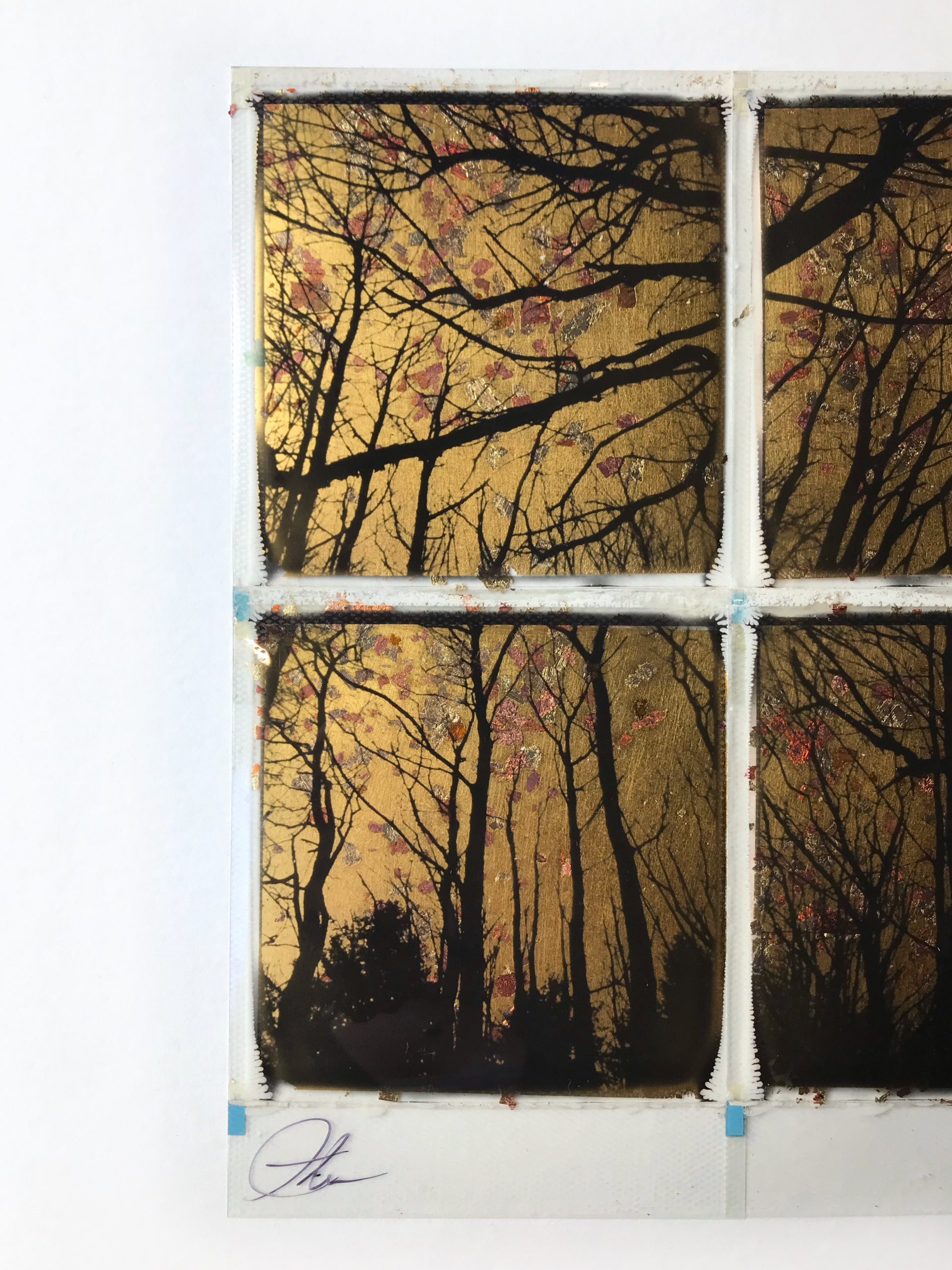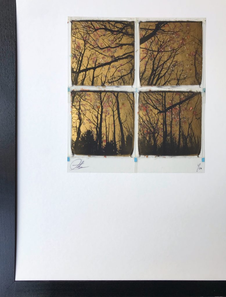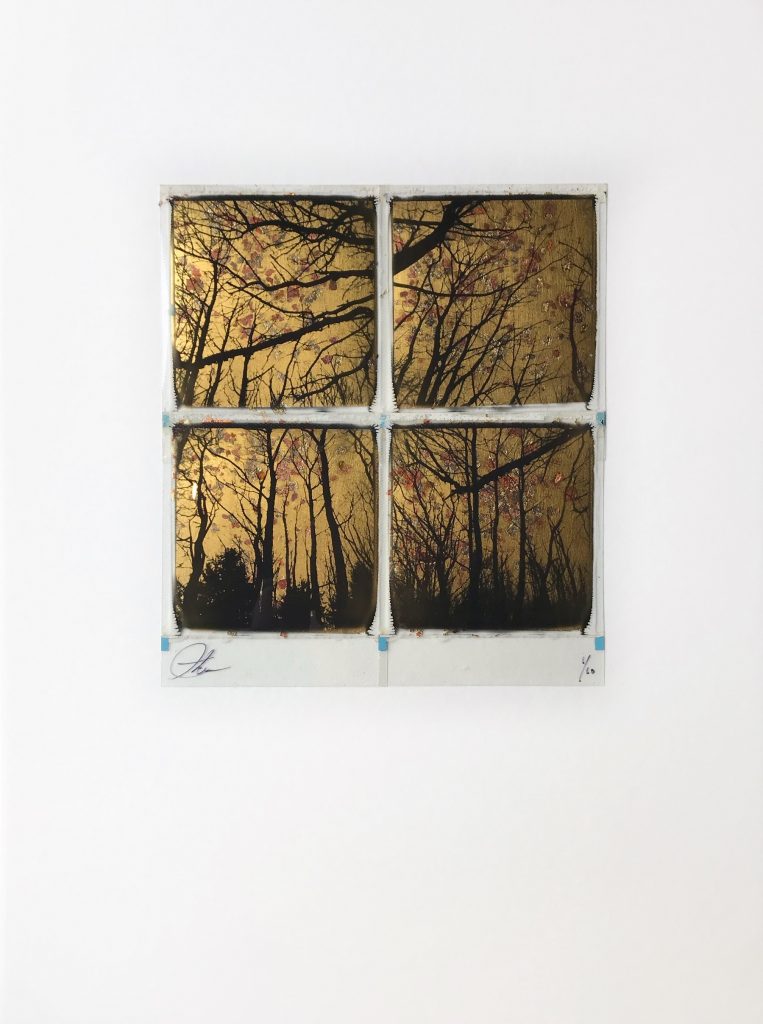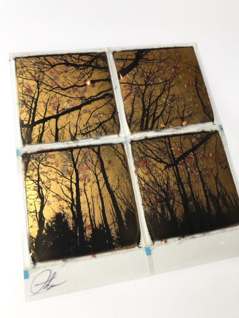 Originele met 24ct bladgoud bewerkte polaroid van Andrew Millar.