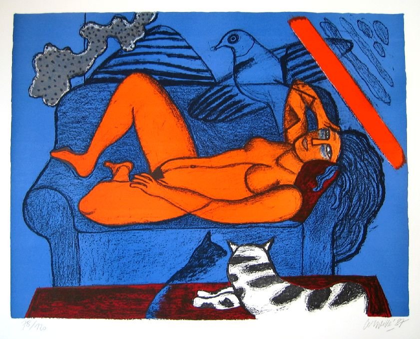 Prachtige oude steendruk van Corneille uit 1987! Het stuk is door de kunstenaar gemaakt in Parijs. (prijs zonder lijst 785)