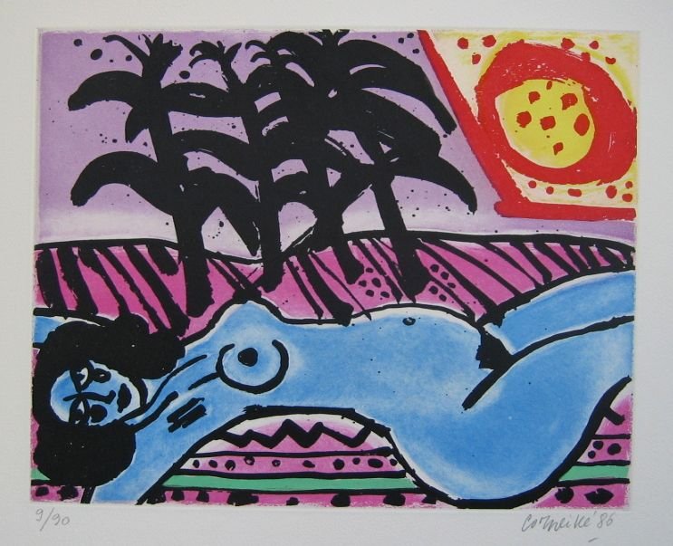 Kleinere zeefdruk van Corneille. De zeefdruk is door Corneille in 1986 vervaardigd op zeer mooi dik 280-grams Arches papier.