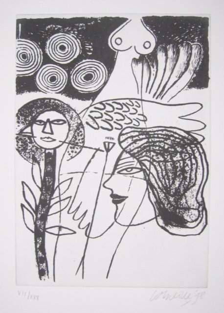 Prachtige Ets van Corneille uit 1998. Deze ets is afkomstig uit verzamelmap Femmes et Oiseaux. In zeer beperkte oplage verkrijgbaar.
