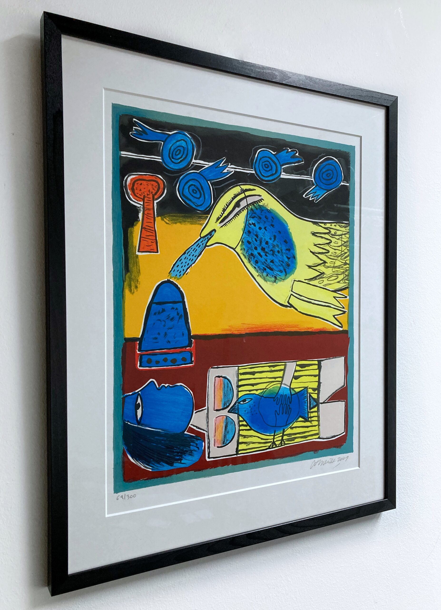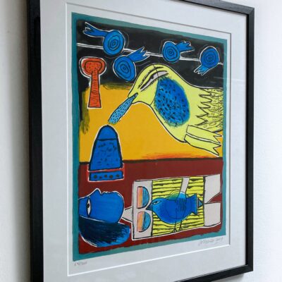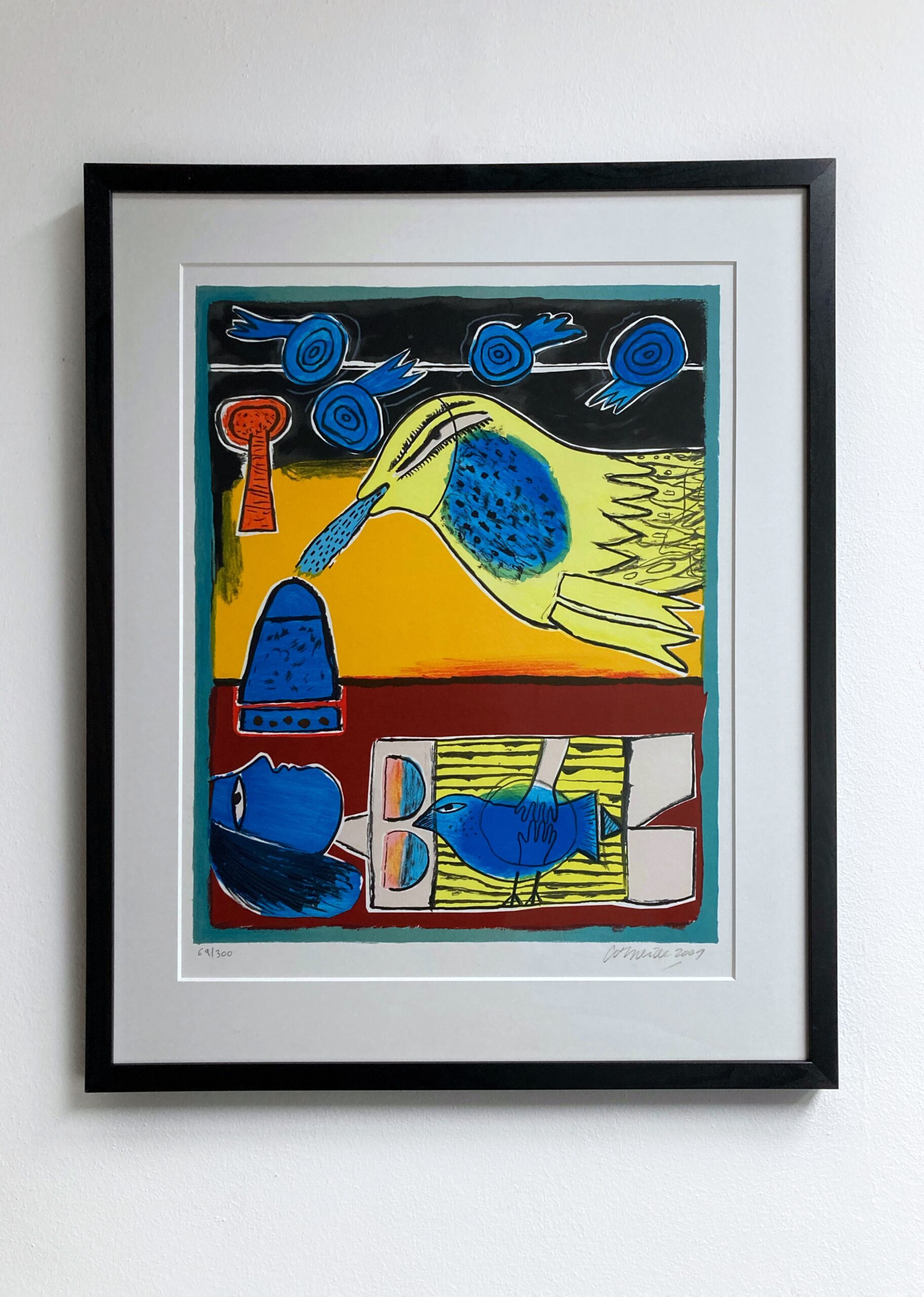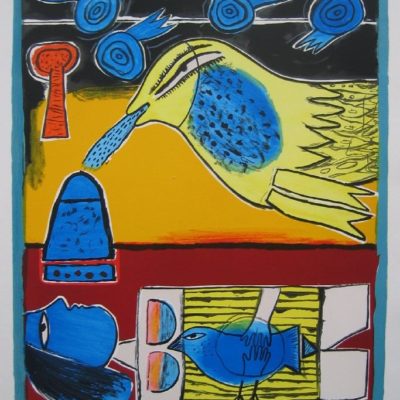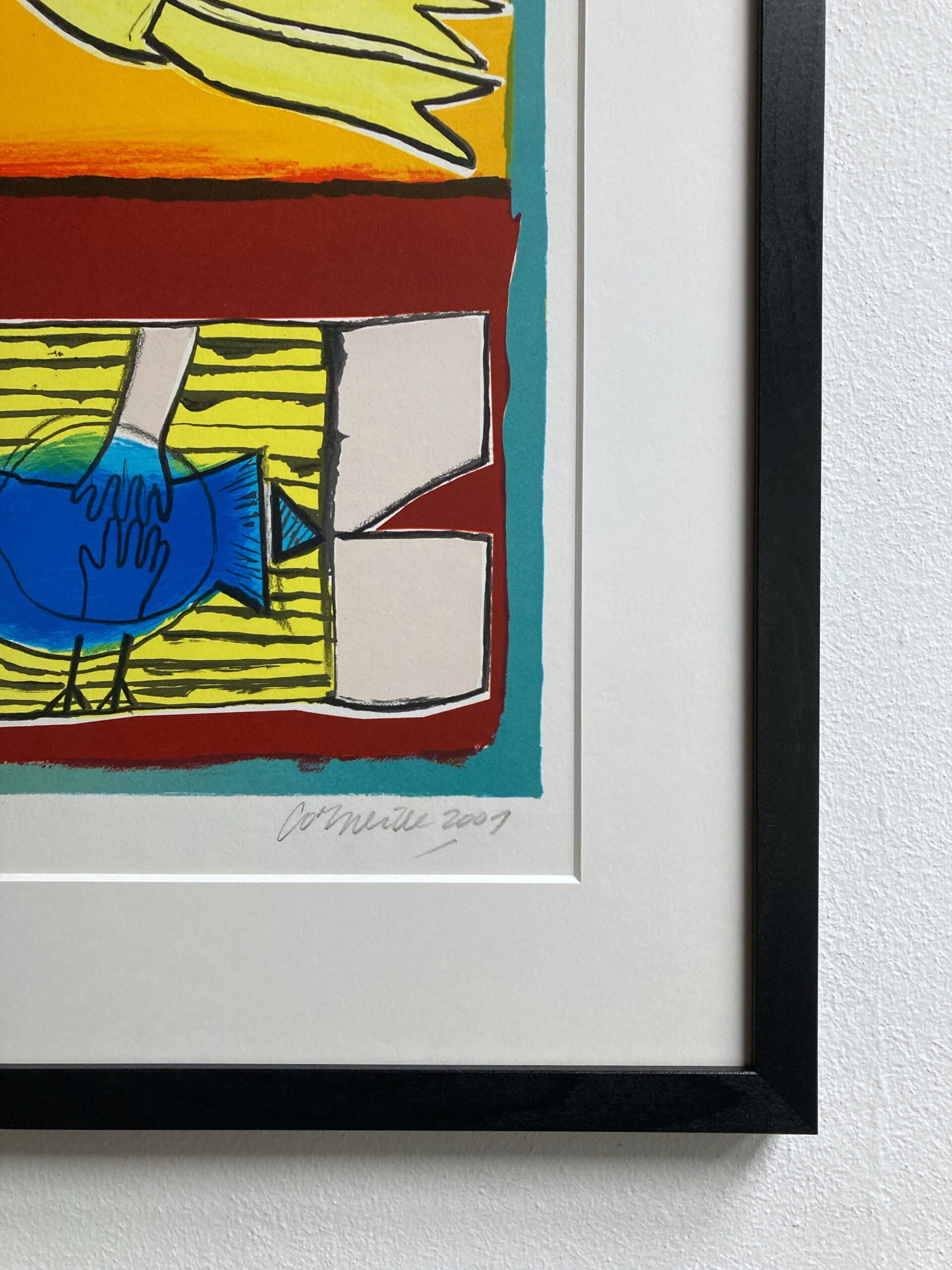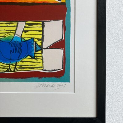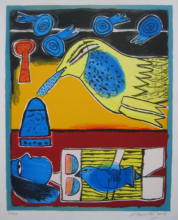 Mooi 2-luik van Corneille uit 2001. Corneille heeft deze werken vervaardigd in opdracht voor een verzekeraar met een grote aantal originele stukken van Corneille in de bedrijfscollectie. De zeefdrukken zijn daarom nooit echt in “omloop” gekomen. De stukken zijn ingelijst in mooie bijpassende handgemaakte lijsten.