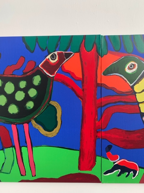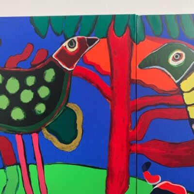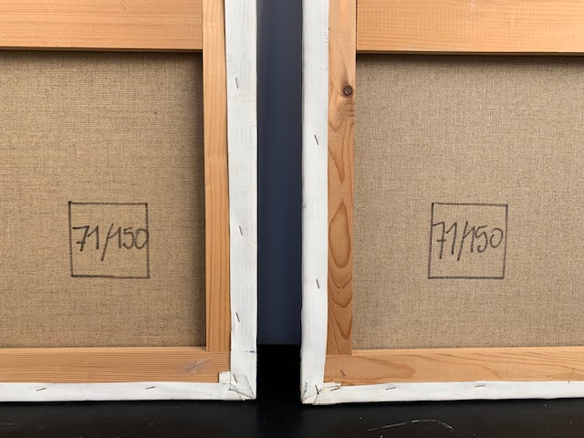 Prachtig uniek 2-luik uit 1985. Zeefdruk op linnen oplage 150 stuks.