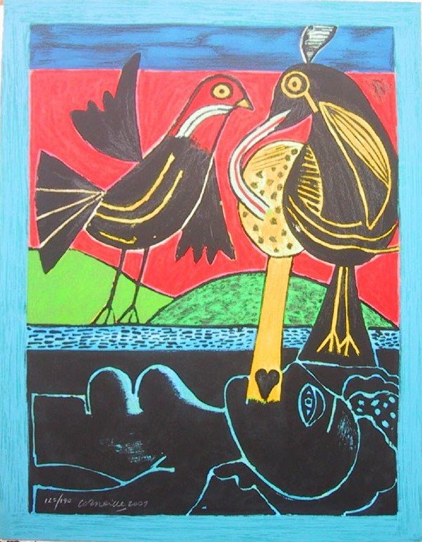 Zeer exclusieve steendruk van Corneille getiteld Vénus Sens Dessus Dessous. Dit is er 1 uit een serie van 5 steendrukken van zeer bijzondere kwaliteit. De steendrukken zijn tot aan de scheprand uitgevuld. Van deze steendruk zijn er slechts 190 in omloop.