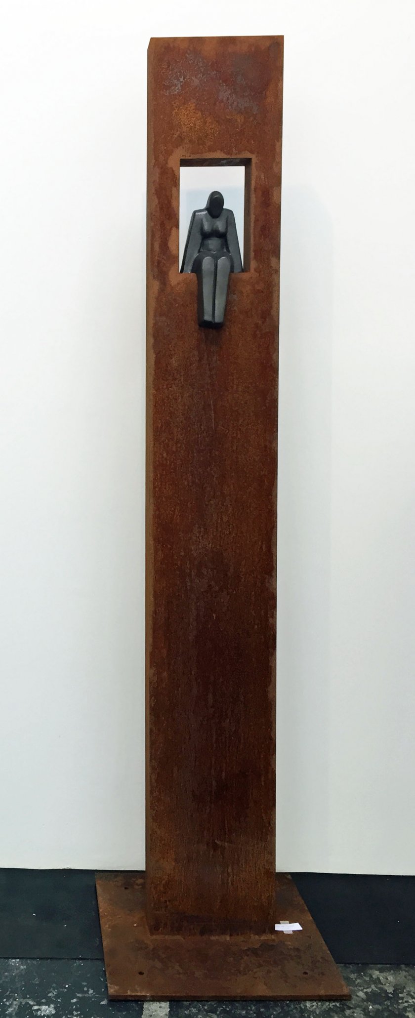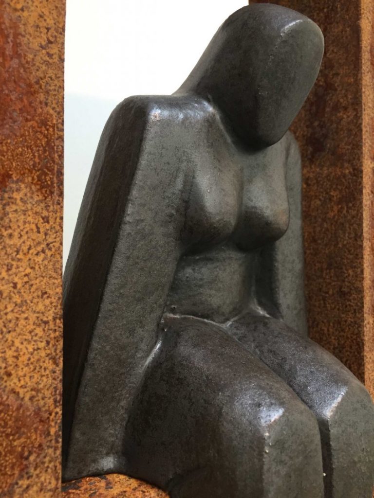Origineel keramiek beeld in Cortenstalen zuil van Giuseppe Lamers.