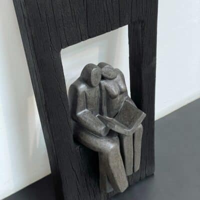 Origineel keramiek beeld van Giuseppe Lamers in zwarte houten omlijsting.