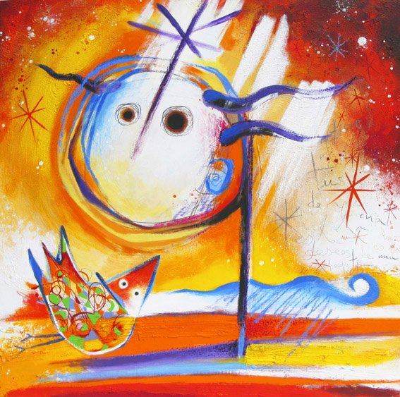 1 van een fraaie nieuwe serie werken van de in Nederland woonachtige van origine Spaanse kunstenares Angeles Nieto. De kunstenares heeft de serie op handgemaakte panelen vervaardigd. De stukken zijn gemaakt met een combinatie van technieken: acryl, inkten, reliëfspecie, zeefdruk en oliekrijt. De stukken zijn door de kunstenares in een kleine oplage van 25 stuks vervaardigd, maar door het vele handwerk toch uniek en niet van originele schilderijen te onderscheiden.