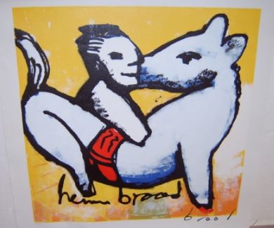 Zeer zeldzame en uitzonderlijk mooie zeefdruk van Herman Brood! Erg fraai van formaat, prachtig gezeefdrukt, gebruikmakend van mooie dikke drukgangen op stevig zeefdrukpapier. Het stuk is ingelijst in een mooie bijpassende lijst.