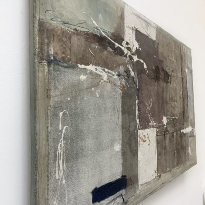 De stukken zijn opgebouwd met de voor Ron van der Werf zo kenmerkende mix van materialen en technieken aangevuld met subtiele details en lokale indrukken en het samenspel wat hierdoor ontstaat is even intrigerend als krachtig. Het stuk is opgespannen op een stevig hout-aluminium lijst waarvan de zijkanten zijn meegeschilderd.