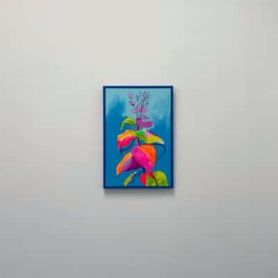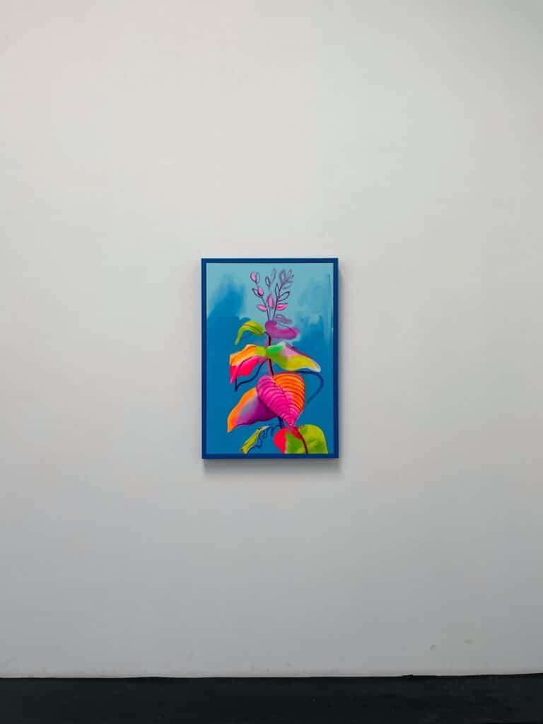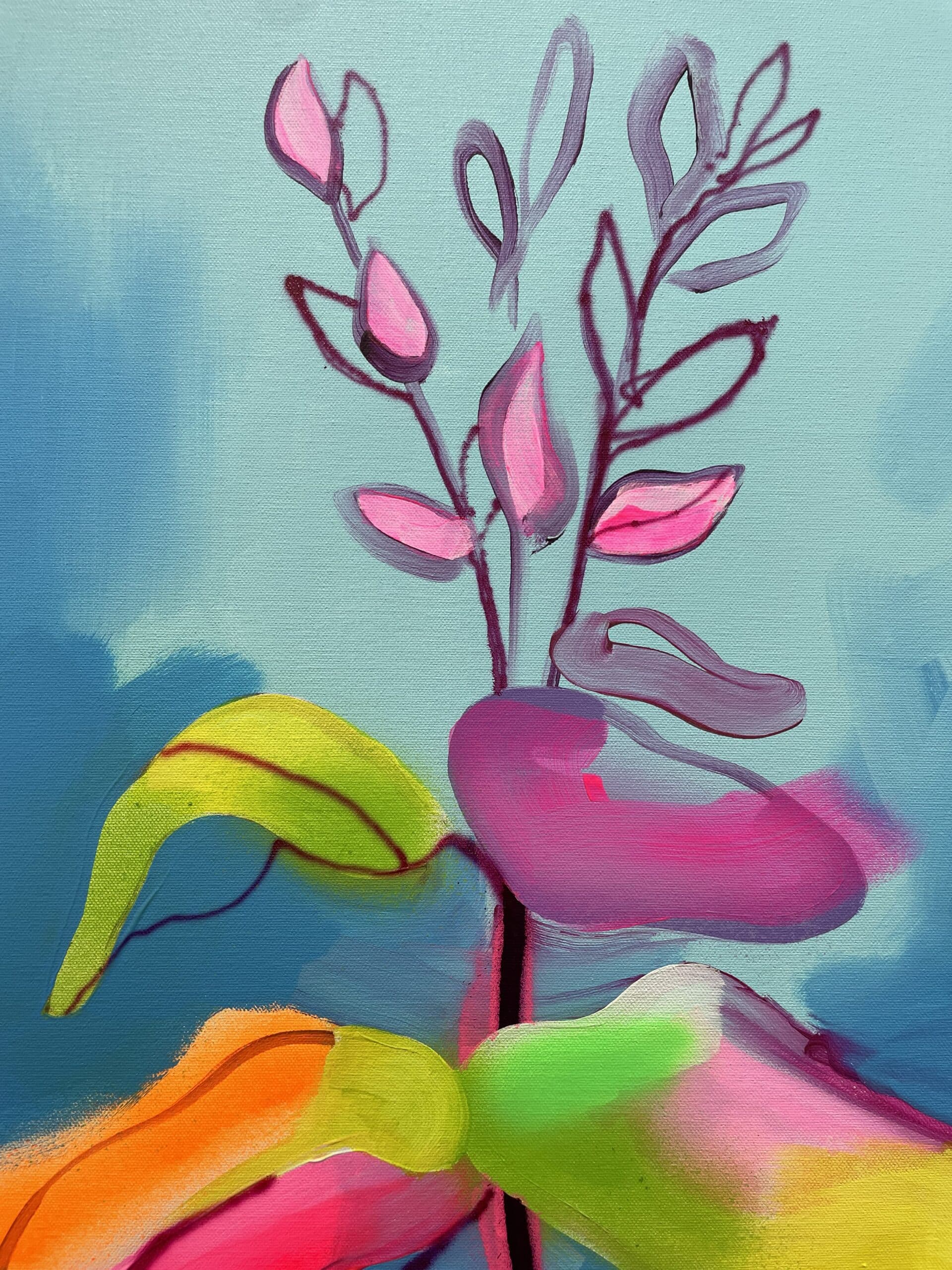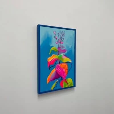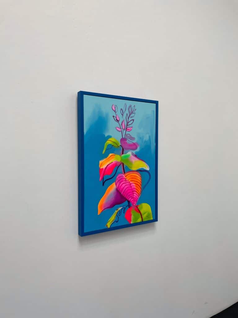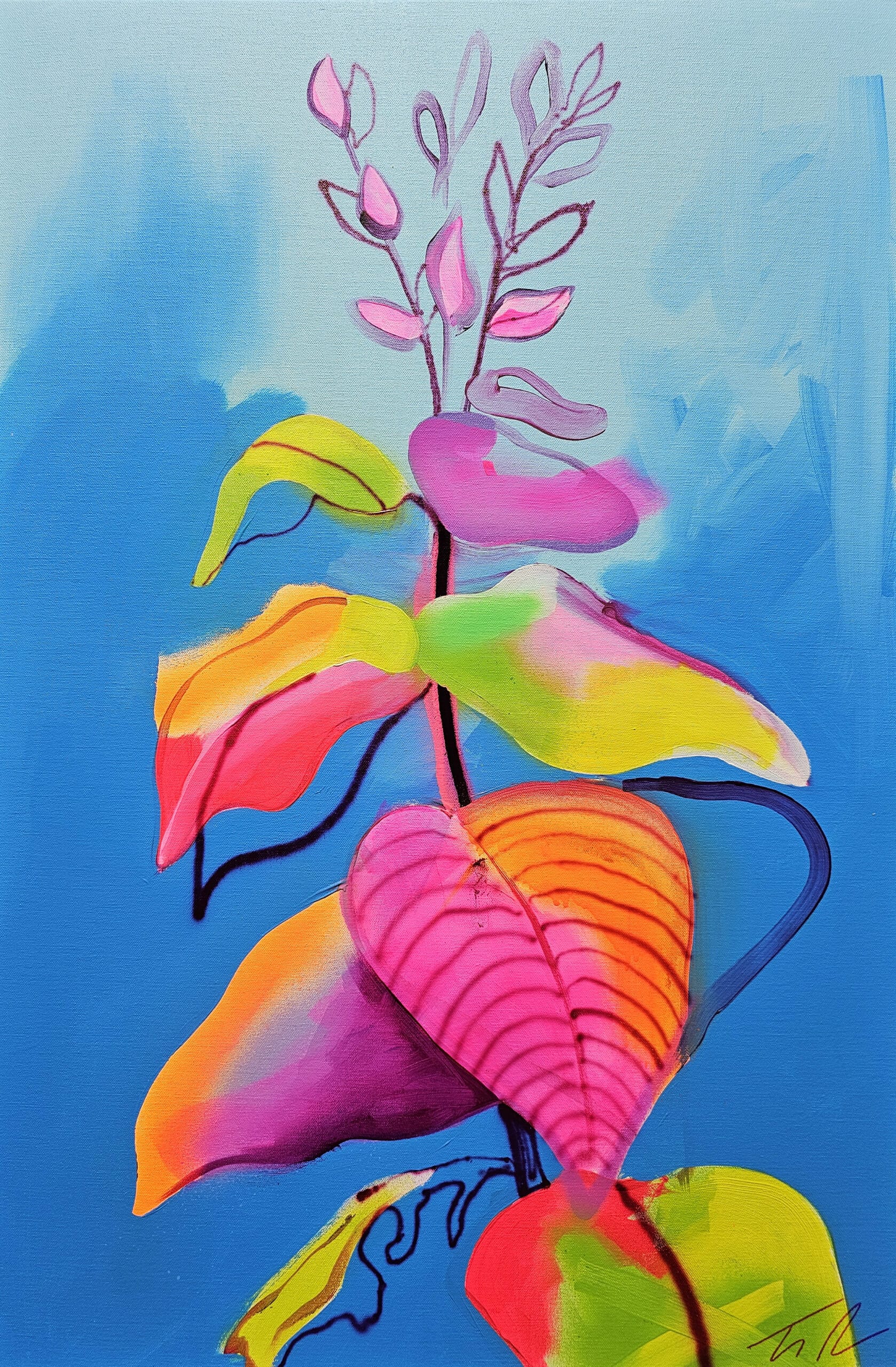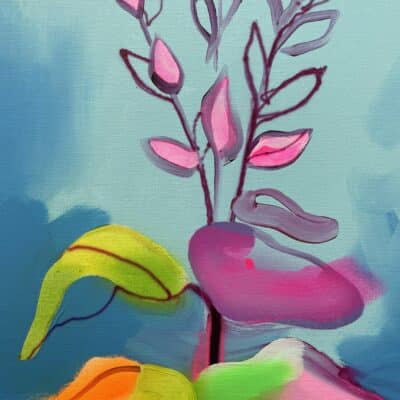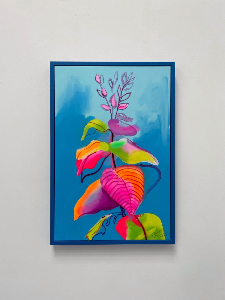 Fowler takes inspiration from exotic and migratory plants reflecting his own DNA, from west Africa, via the Caribbean to the UK. He subverts traditional and contemporary methods of applying oil, acrylic, spray, enamel and graffiti inks using brushes, different aperture caps and marker paint mops to orchestrate purposeful marks, strokes, drips, scrapes and smears across the canvas whilst constructing his exciting and dynamic artworks.
