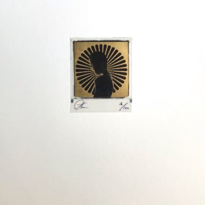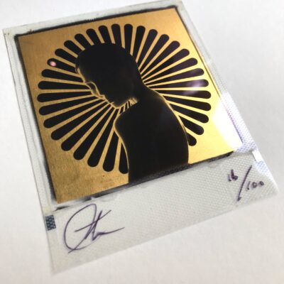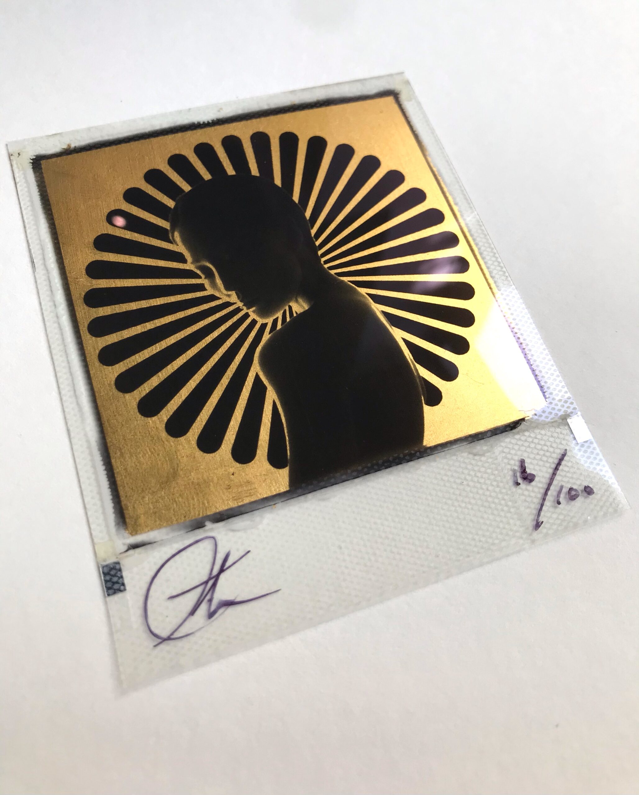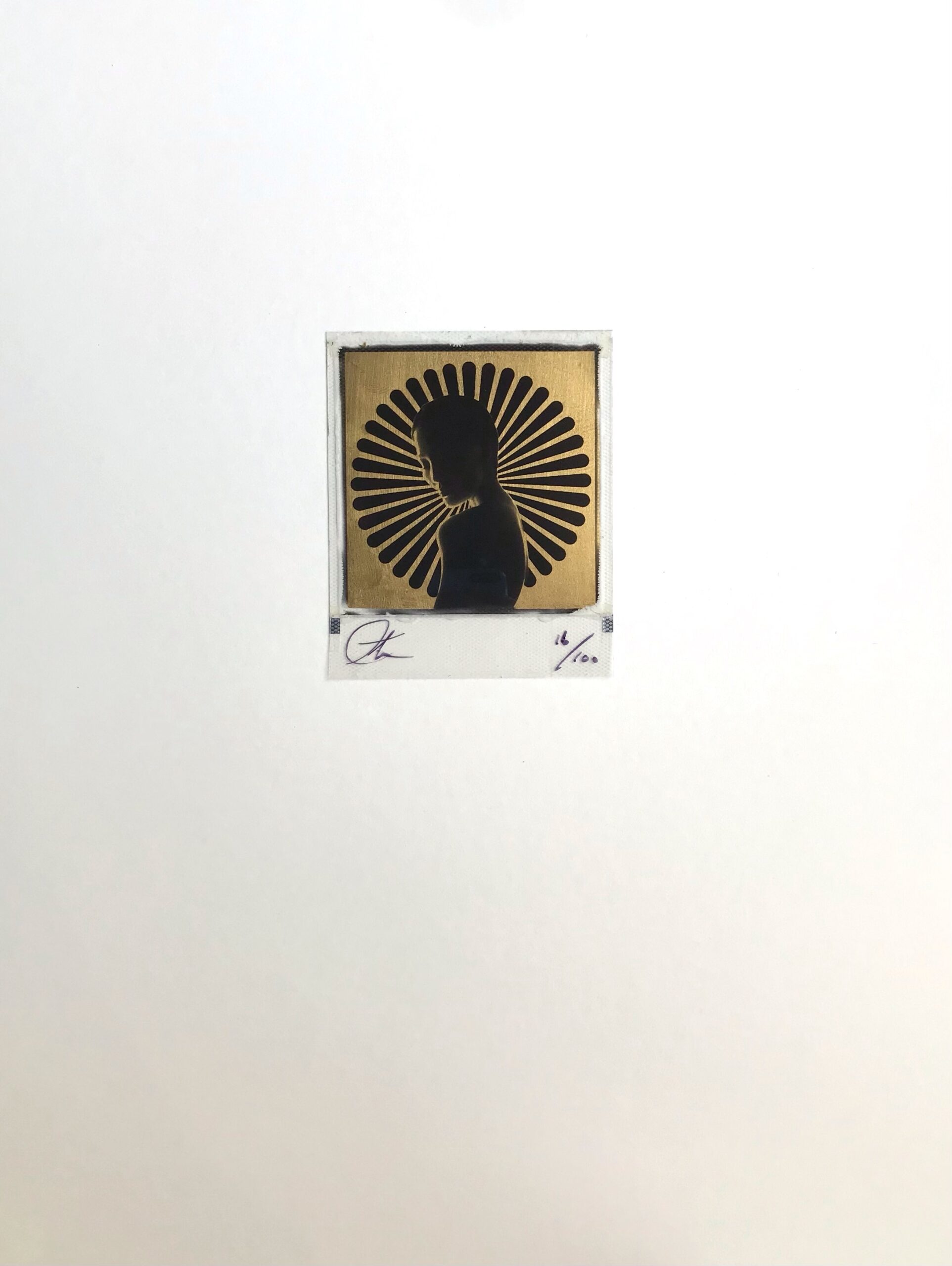 Originele met 24ct bladgoud bewerkte polaroid van Andrew Millar.