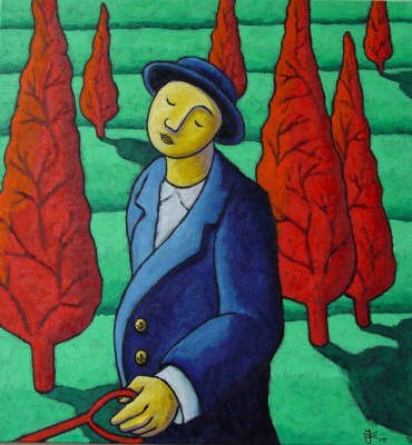Mooi origineel werk van Jaques Tange. De kunstenaar veraardigde het stuk met oliverf op linnen en het schilderij is weer uitzonderlijk diep en helder van kleur en ingenieus van figuratie. Het werk is door de kunstenaar ingelijst in een kenmerkende door hem zelf met de hand vervaardigde houten baklijst.