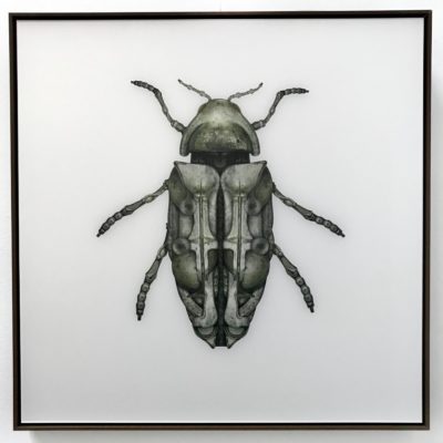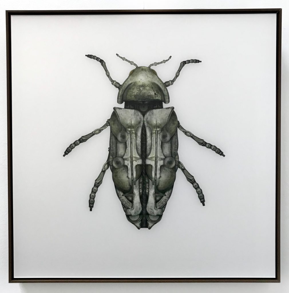 Jewel Beetle I is een juweelkever die De Ligny geheel heeft opgemaakt uit foto’s van één vleesmolen, uit alle hoeken gefotografeerd, ontmanteld, en in onderdelen opnieuw gefotografeerd.
