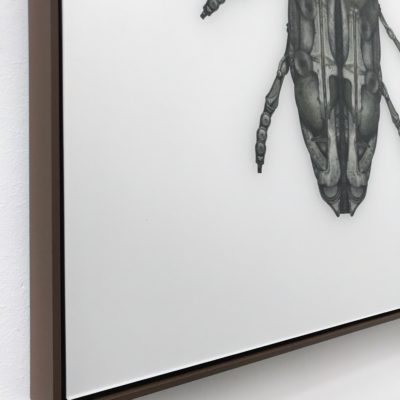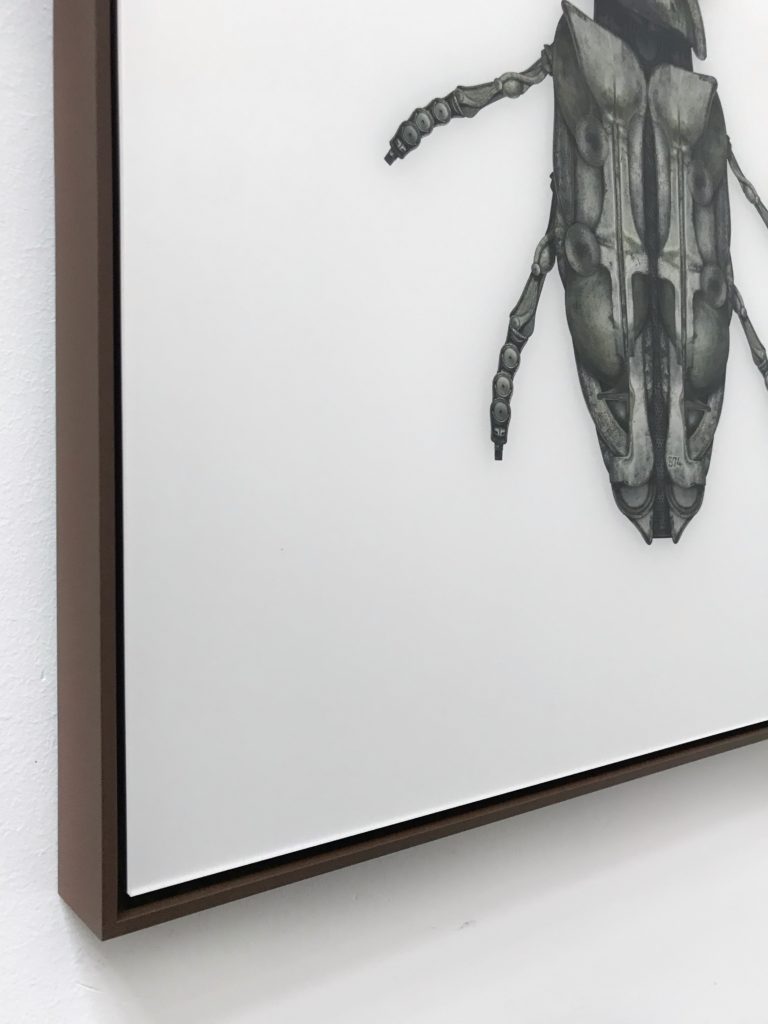 In de serie Arthropods bootst De Ligny’s kunst de natuur letterlijk na. Met zijn nieuwe werken reproduceert De Ligny de uitwendige skeletten van insecten met foto’s van gereedschap en schroot dat hij opduikelt van de straat of uit boerenschuren, vuilcontainers en kringloopwinkels. De Ligny fotografeert deze objecten onder een constante, loodrechte hoek om optische vervorming te minimaliseren. In zijn kenmerkende minutieuze stijl vervangt hij vervolgens elk segment van het geraamte door een foto. Het is een proces dat maanden in beslag kan nemen en het effect is een tweedimensionale maar gelaagde herschepping van het exoskelet, die tegelijkertijd herkenning en bevreemding opwekt. De werken zijn uitgevoerd op museum-kwaliteit Fujiflex papier achter mat plexiglas en ingelijst in een fraaie zwevende roestige baklijst.