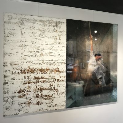 Mixed media fotografie. De kunstenaar verbind beide disciplines, de fotografie en de schilderkunst, met elkaar door deze, al dan niet in of naast elkaar, in één werk samen te brengen.