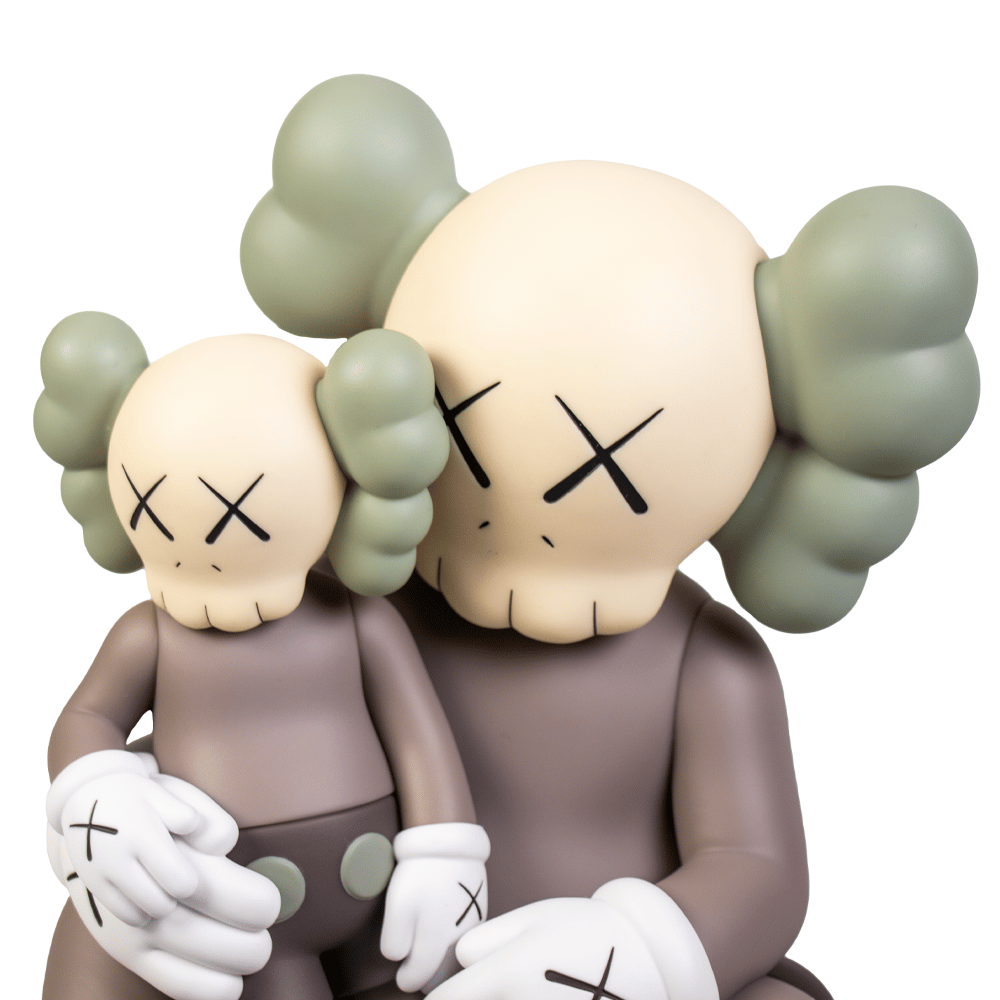 This vinyl figure comes in a brown, grey colorway, measures 8.5 inches/21,6 cm tall and features a companion figure sitting down holding a smaller companion figure leaning back on its lap.