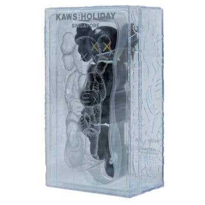The classic KAWS Companion figure is lying on its back holding a smaller companion in its arms, reclined and in embrace. In celebration of the highly-anticipated event Brian Donelly, known as KAWS, released this Holiday Singapore Figure replica. “In the first Holiday project (on Seoul’s Seokchon Lake), the figure was reclining in water looking straight up. I was trying to think of the most relaxed situation I could possibly be in and I imagined swimming and just staring up into the sky.” – Brian Donelly