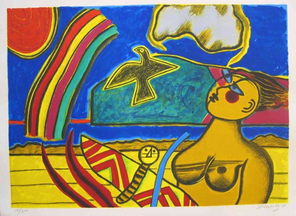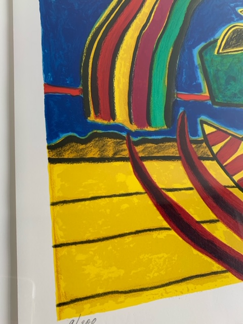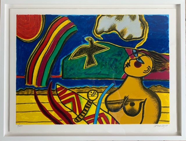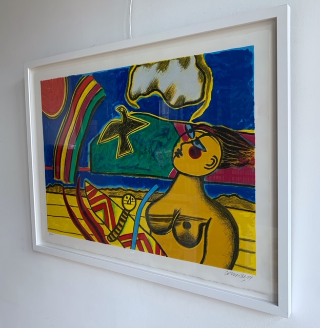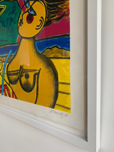 Schitterende litho-serie van Corneille. Deze litho is er 1 uit een serie van totaal 5 nieuwe litho’s.Ingelijst in wit houten handgemaakte lijst.Dit werk is ook los verkrijgbaar. Informeer bij interesse.
