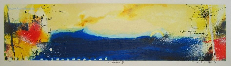 Zeer fraaie zeefdruk van de Nederlandse kunstenaar Theo Koster getiteld “La Promesse II”. Theo Koster staat bekend om zijn fraaie expressieve landschappen en ook in deze zeefdruk heeft hij dit thema prachtig “verwoord”. Spannend van formaat en kleurgebruik en de zeefdruk is ingelijst in een mooie exclusieve houten zilverkleurige lijst.