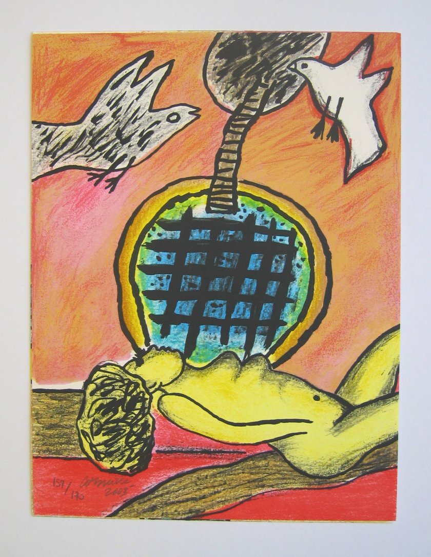 Zeer fraaie Litho van Corneille uit 2003. Het is 1 uit een serie van 4 Litho’s, die met een fantastisch oog voor detail zijn geproduceerd! Het is net of Corneille de stukken met de hand heeft ingekleurd. De Litho’s zijn “zwevend” ingelijst wat een heel bijzonder effect geeft!