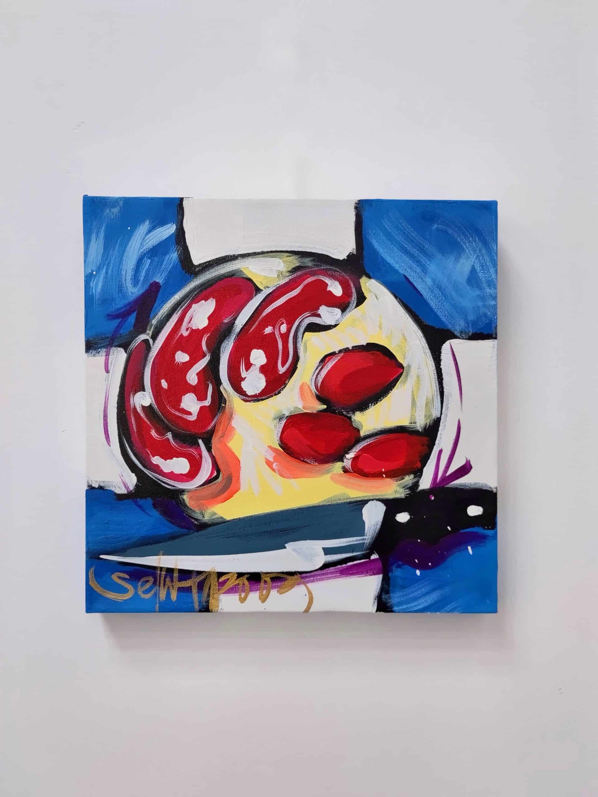 Origineel werk van Selwyn Senatori in prachtige kleuren. Het stuk is met gemengde technieken opgebouwd met een vlotte, vrije en trefzekere schilderstijl en het krachtige, dynamische kleurgebruik wat zo karakteristiek is voor Senatori’s werk.