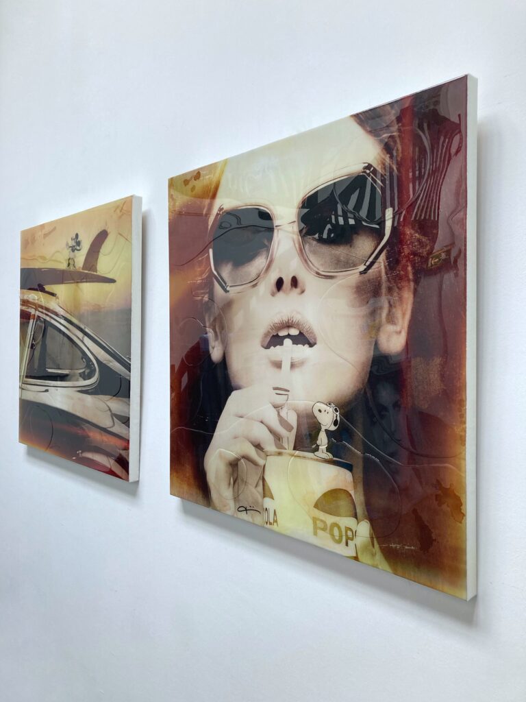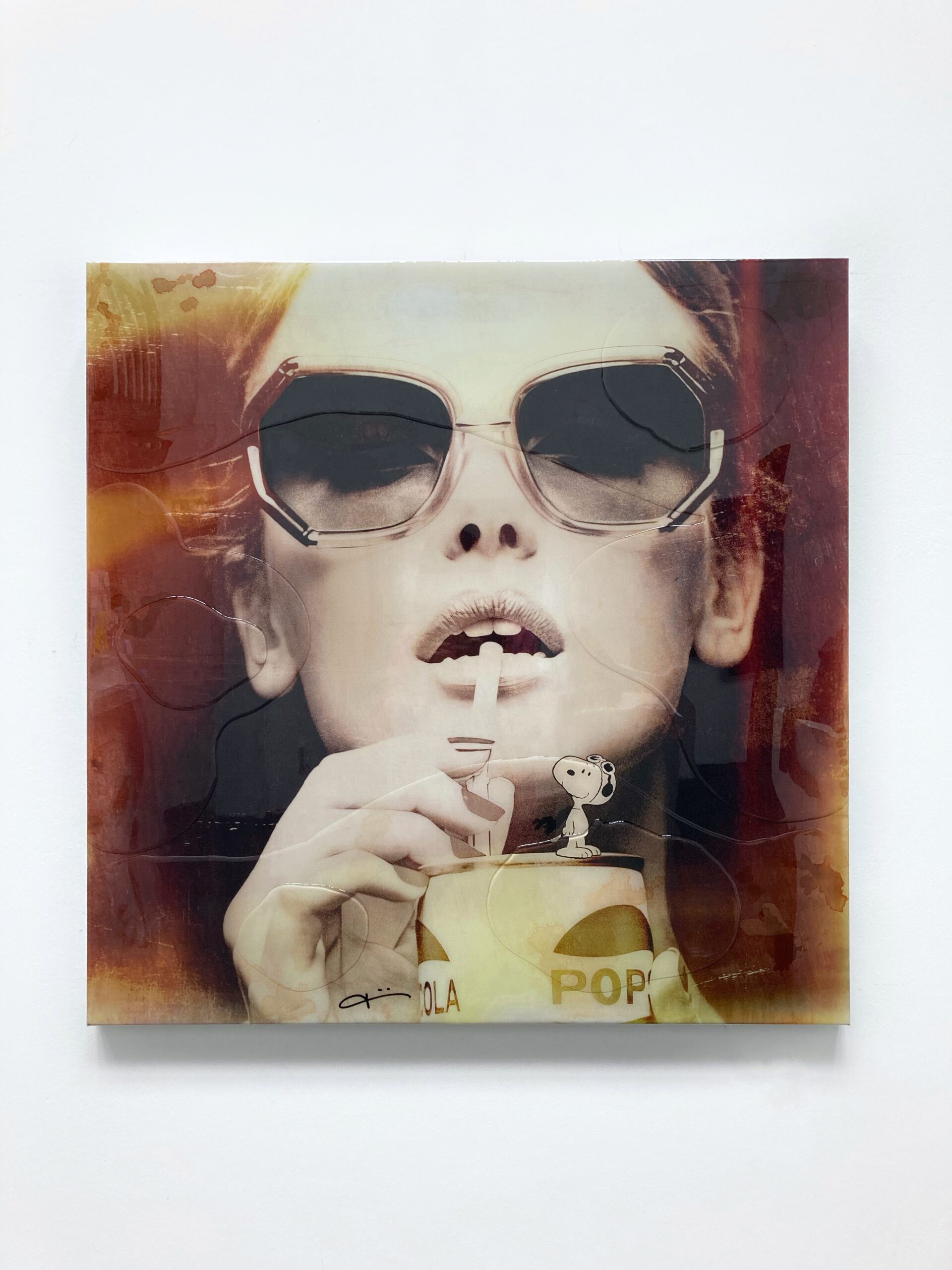 Mixed media monotype op linnen van de befaamde Duitse kunstenaar Jörg Döring. Het werk is door de kunstenaar opgebouwd uit mooie heldere kleuren gecombineerd met foto’s, ruw geschilderde oppervlaktes, typografie en geschreven teksten. Het werk is met epoxy afgewerkt. De monotypes zijn in een volledig met de hand vervaardigde oplage vervaardigd waardoor elk stuk volledig uniek is.