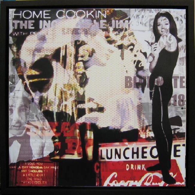 Prachtige monotype van Marcel Terrani. Terrani’s werk past in de traditie van de decollage. Bij het vervaardigen van een decollage werden in het oorspronkelijke proces affiches gemanipuleerd, verknipt en bewerkt. Deze innovatieve methode ontstond in de jaren 50 en vond zijn oorsprong bij de befaamde kunstenaar Mimmo Rotella. Terrani verbeterde de decollage methodiek met behulp van de hedendaagse digitale media. Hij combineert in zijn werk verschillende stijlen en multimedia technieken. De monotypes zijn vervaardigd op linnen en met de hand bewerkt en beschilderd. De stukken zijn ingelijst in mooie bijpassende houten baklijsten.