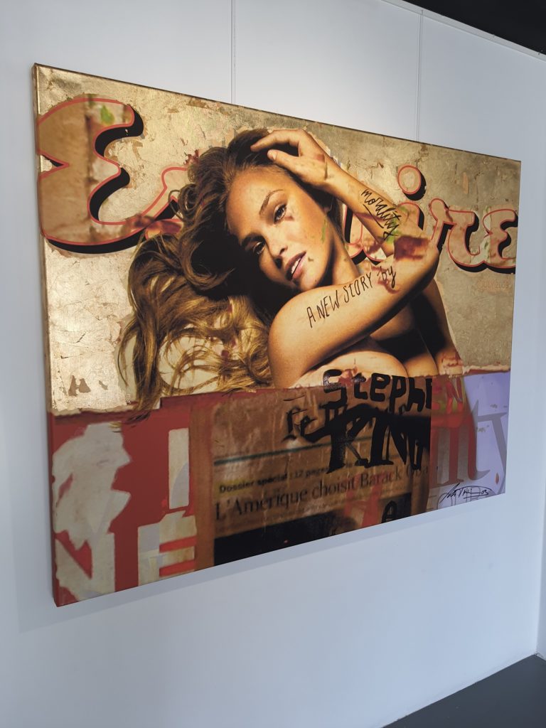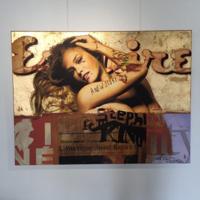 Prachtig monotype van Marcel Terrani. Terrani’s werk past in de traditie van de decollage. Bij het vervaardigen van een decollage werden in het oorspronkelijke proces affiches gemanipuleerd, verknipt en bewerkt. Deze innovatieve methode ontstond in de jaren ’50 en vond zijn oorsprong bij de befaamde kunstenaar Mimmo Rotella. Terrani verbeterde de decollage methodiek met behulp van de hedendaagse digitale media. Hij combineert in zijn werk verschillende stijlen en multimedia technieken. De monotypes zijn vervaardigd op linnen en met de hand bewerkt en beschilderd. De stukken zijn door Terrani in een zeer beperkte oplage van slechts 3 stuks vervaardigd!