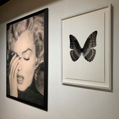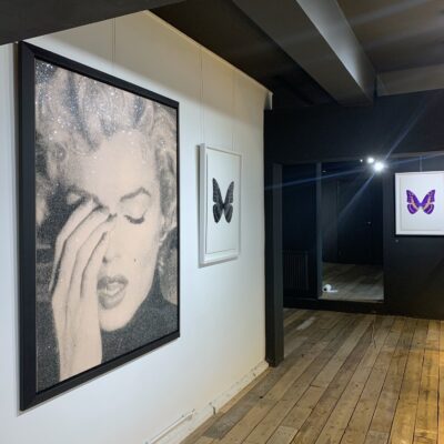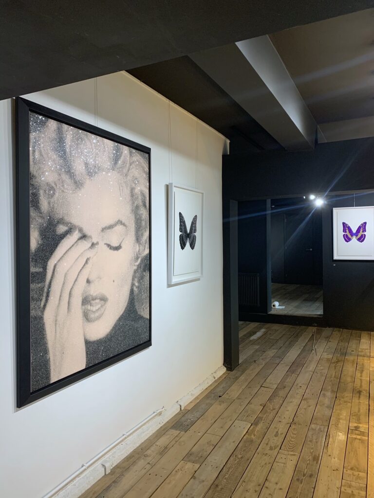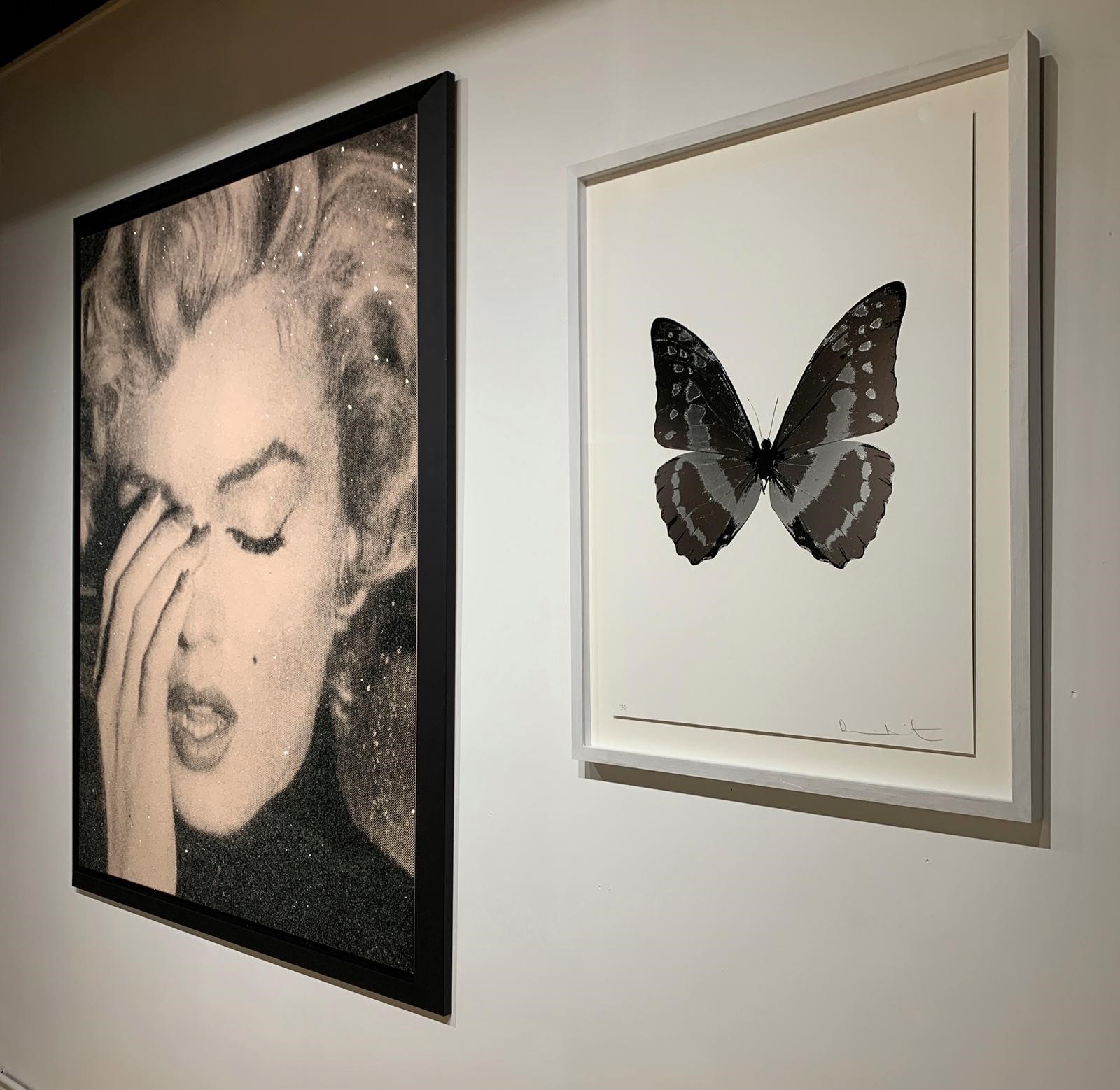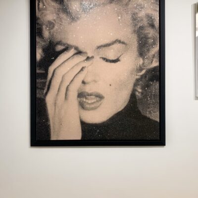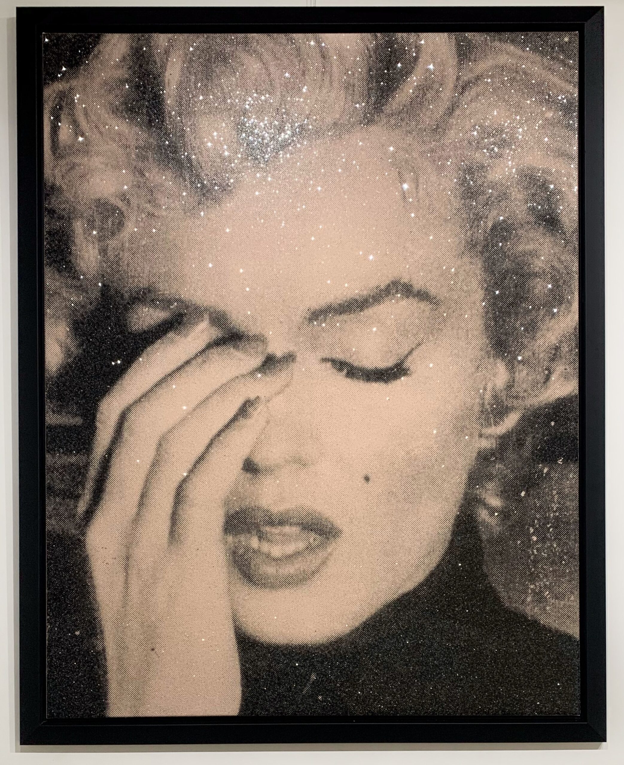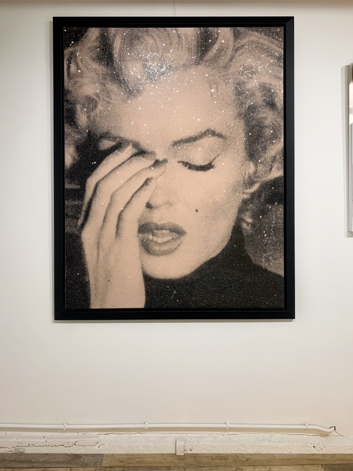 Bijzondere zeefdruk op doek door de Amerikaanse kunstenaar Russell Young. Het werk is afgewerkt met diamond dust in de kleur Capitola Pink and Black.