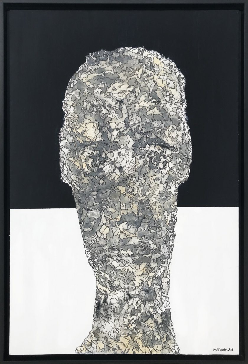 Mart Visser schildert, bouwt en vormt al sinds de academietijd koppen, tronies, gelaatsuitdrukkingen. Geen portretten maar vormen en associaties van het gezicht, soms expressief, dan weer vervaagd of minimalistisch neergezet. Structuur, reliëf en liefde voor oude verweerde materialen. Voor Visser is zijn werk een ode aan creatie. ‘Het laten ontstaan, intuïtief, niet gehinderd door grenzen van het 2-dimensionale of voorgeschreven regels.’