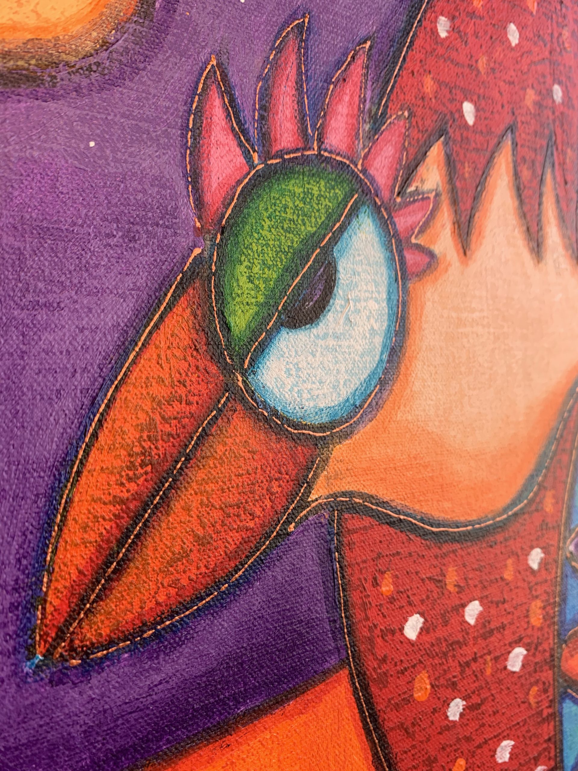 1 van 4 mooie originele werken op linnen van Michiel Molenaar. Michiel vervaardigde de stukken in de zomer van 2010. De stukken zijn geschilderd op dubbeldik opgespannen frames en weer bijzonder mooi en speels van kleur en figuratie.