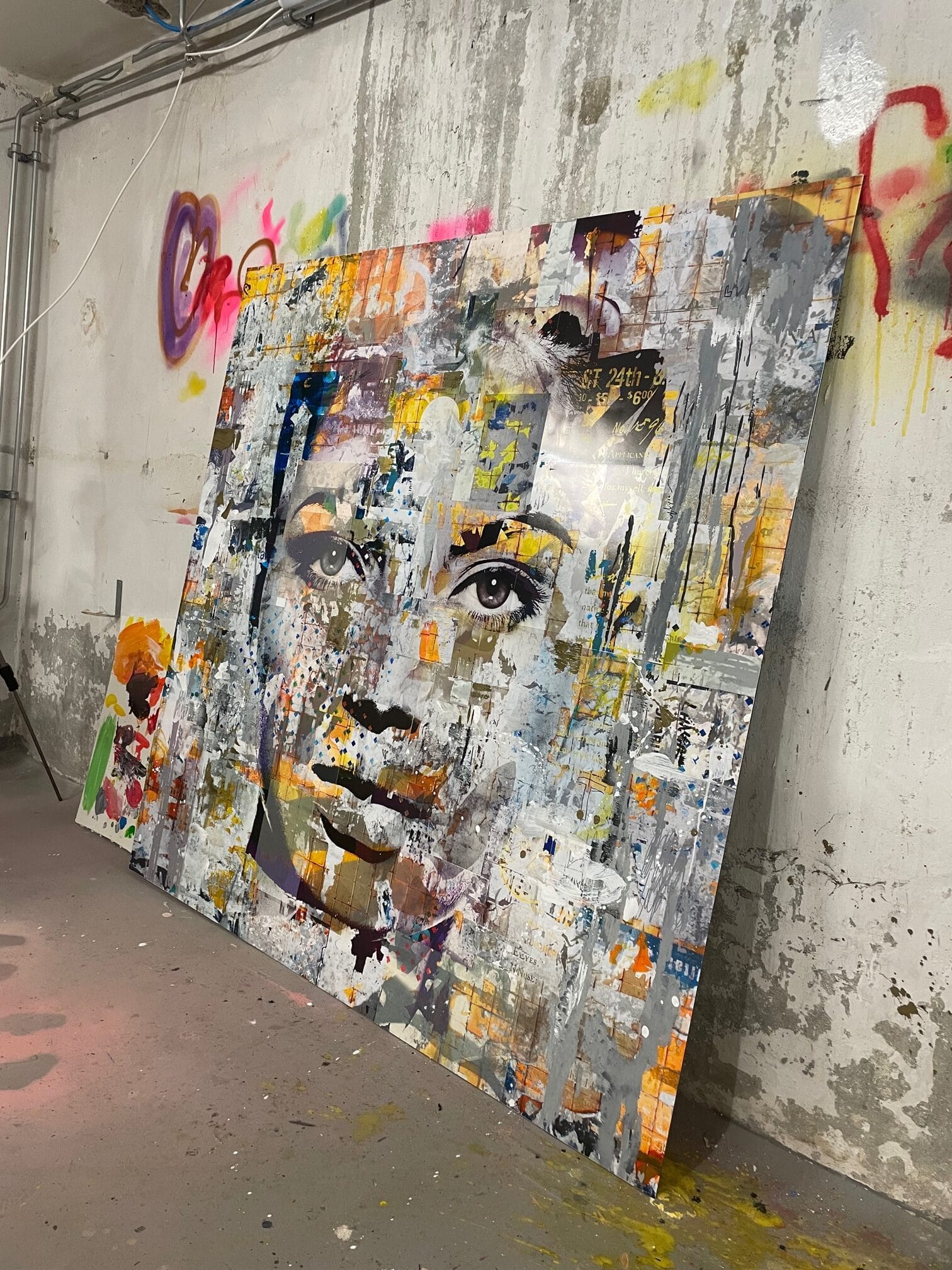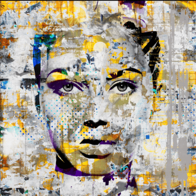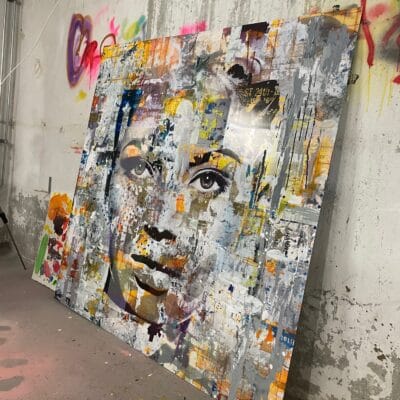 Met een mix van digitale manipulatie, grafische vormgeving, verf- en sjabloontechnieken geeft de kunstenaar een heel eigen dimensie aan de zaken die we dagelijks om ons heen hebben, van schilderij tot meubel, mode en sculpturen. Stoere, ongepolijste energie van de stad afgezet tegen kwetsbaarheid van menselijke interactie. Dit werk bestaat onder andere uit de foto’s van verschillende gezichten, die samen één nieuw gezicht vormen.