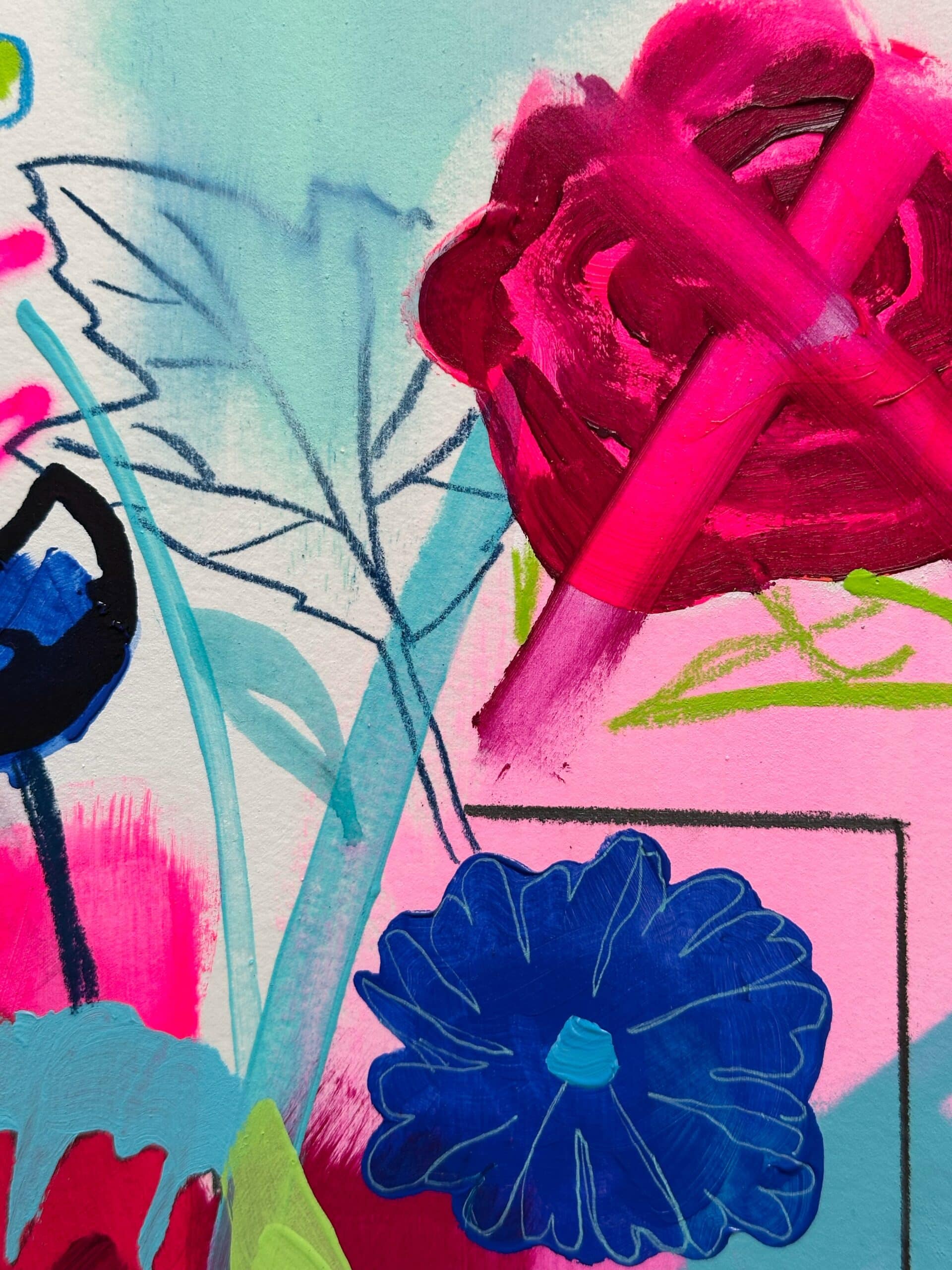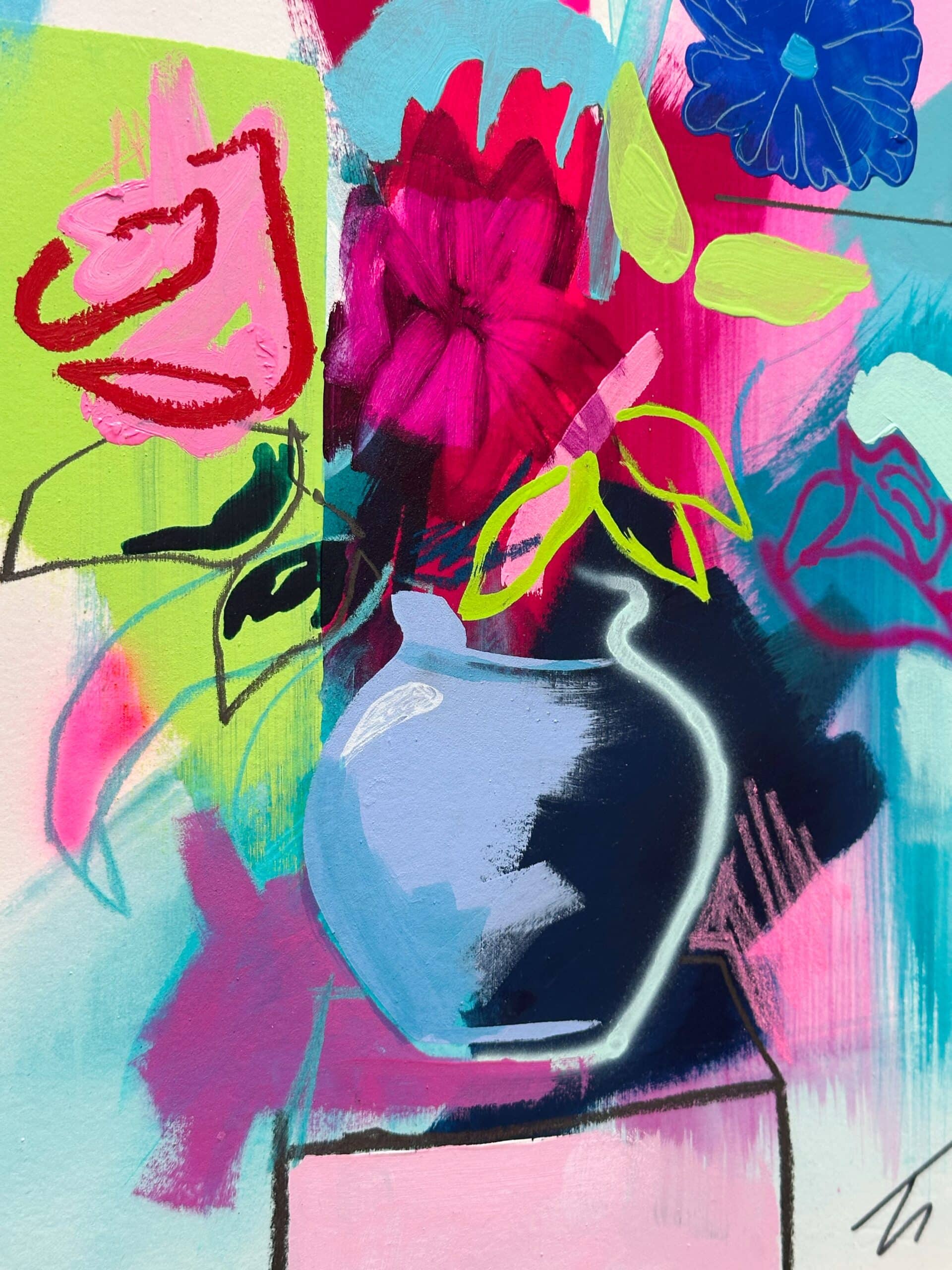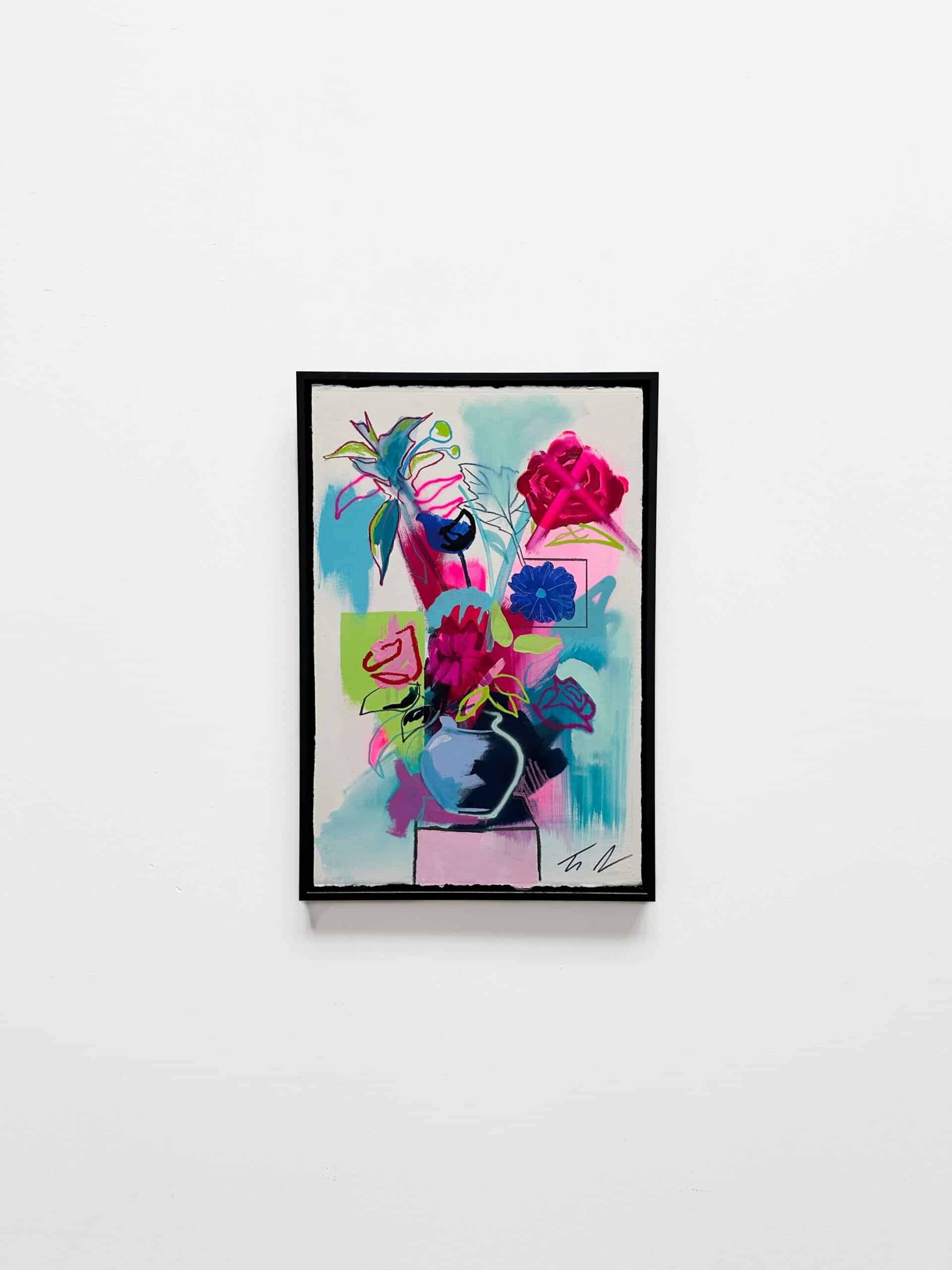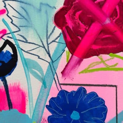 Fowler takes inspiration from exotic and migratory plants reflecting his own DNA, from west Africa, via the Caribbean to the UK. He subverts traditional and contemporary methods of applying oil, acrylic, spray, enamel and graffiti inks using brushes, different aperture caps and marker paint mops to orchestrate purposeful marks, strokes, drips, scrapes and smears across the canvas whilst constructing his exciting and dynamic artworks.