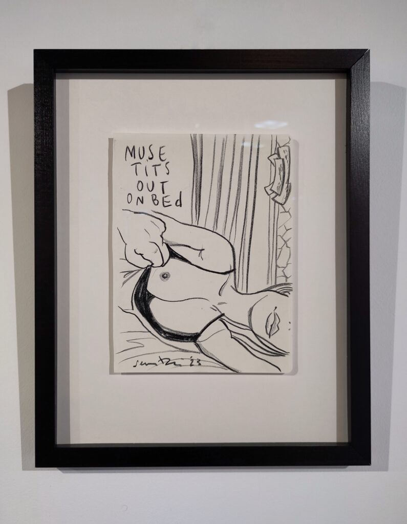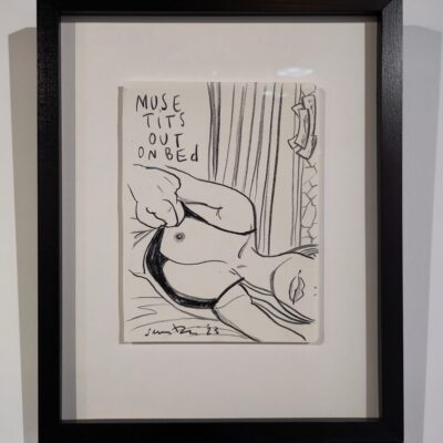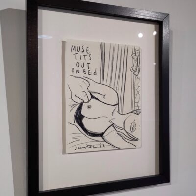 Original sketch on Moleskine paper from one of Selwyn Senatori’s private sketchbooks. Mounted floating in a handcrafted black wooden frame behind anti-reflective, UV-protective museum glass.