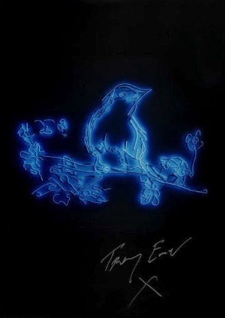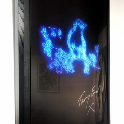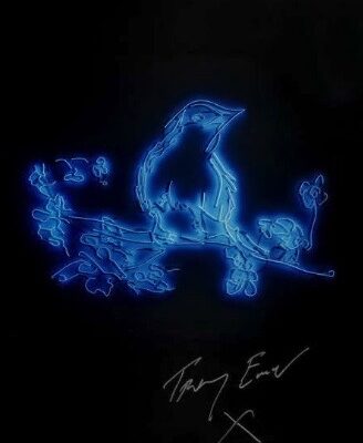 Beautiful print based on Tracey Emin’s famous neon artwork “My favourite Little Bird” (2010). Printed on silk finish paper and signed by the artist in silver marker. Framed in a black wooden frame with a black backing board included.