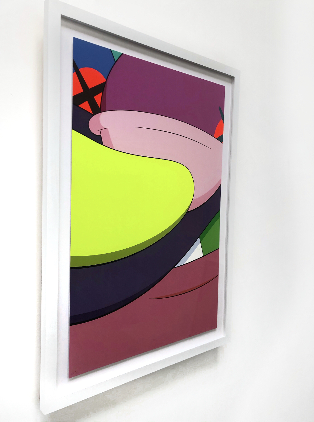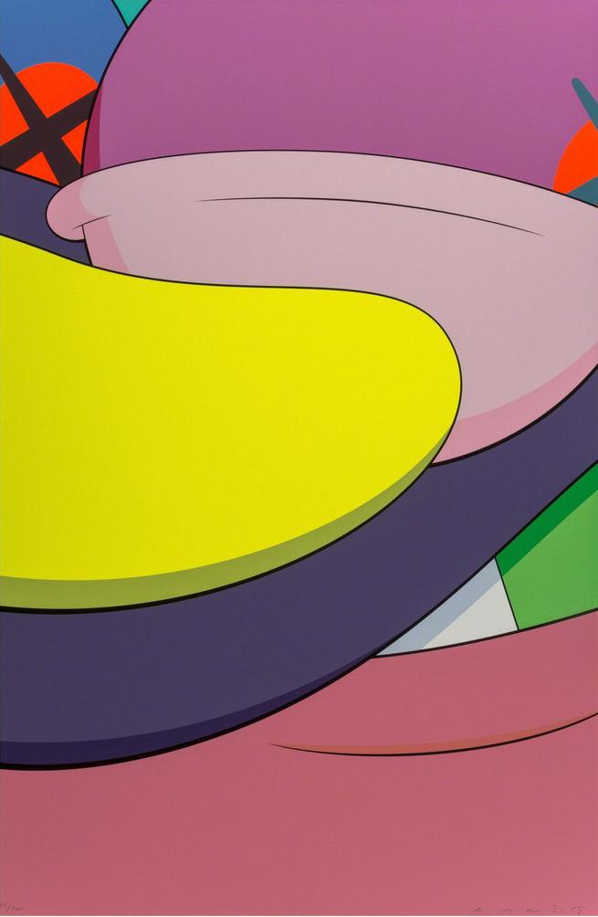 Presented first at the Pace Prints Gallery in New York 2015, Brooklyn-based artist KAWS strikes again with his universal visual vocabulary in his ‘No Reply’ portfolio. In this critically-acclaimed series, KAWS shows a sublime example of his unique abstraction process, transforming highly recognizable parts of iconic cartoon characters into a vibrant, new enigmatic world of fantasy. Inspired by pop culture figures as Garfield, Spongebob Squarepants and The Simpsons among others, the layers of abstract shapes are distinguished by KAWS’s highly distinctive ‘XX eyes’ signature. As a woldwide acknowledged cultural phenomenon, there has arisen a high rivalry between KAWS collectors within and outside the art scene.