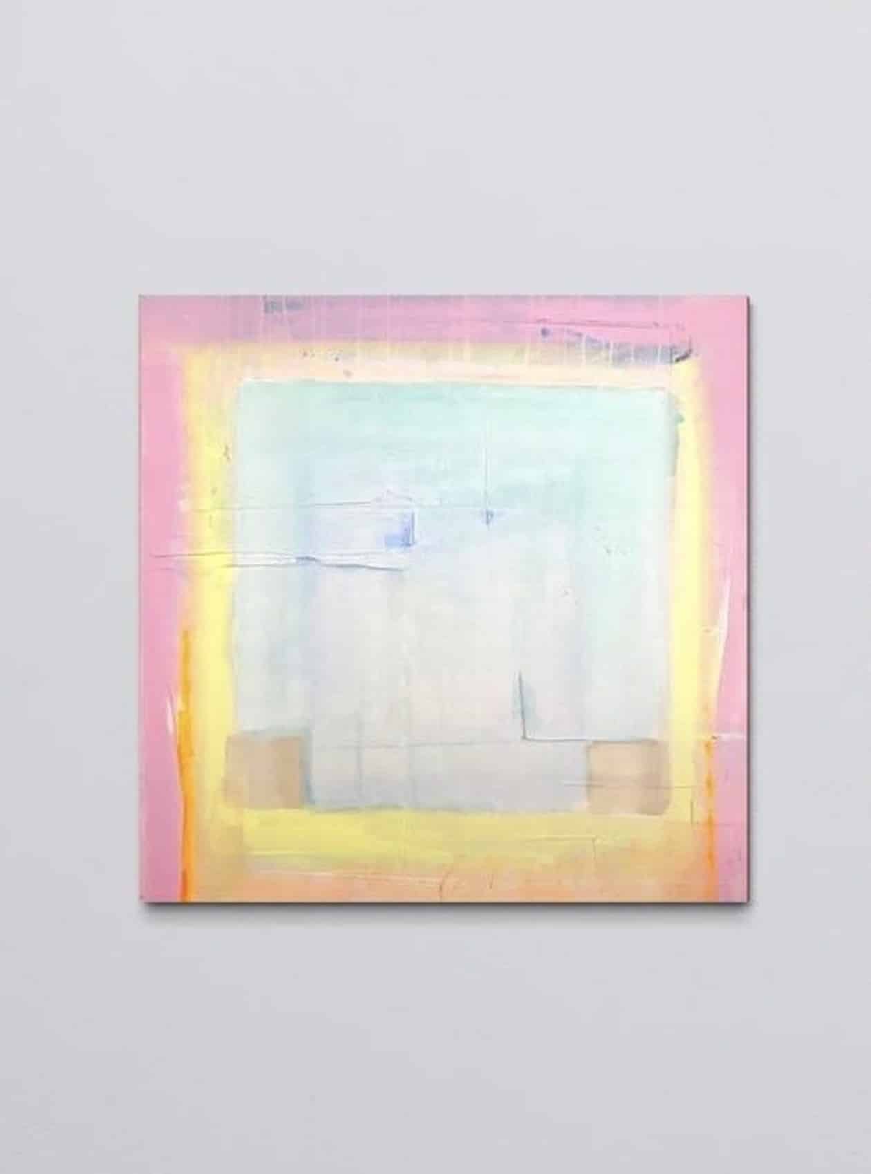 With soft pastels and transparent layers, Thorik creates a harmonious tension between form and emptiness. The composition is built from subtle fields of pink, yellow and light blue, glowing like a soft frame. Its calming presence makes it ideal for a modern, light interior that seeks balance and serenity.