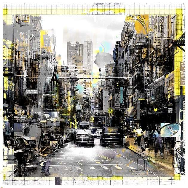 Met een mix van digitale manipulatie, grafische vormgeving, verf- en sjabloontechnieken geeft de kunstenaar een heel eigen dimensie aan de zaken die we dagelijks om ons heen hebben, van schilderij tot meubel, mode en sculpturen. Stoere, ongepolijste energie van de stad afgezet tegen kwetsbaarheid van menselijke interactie.
