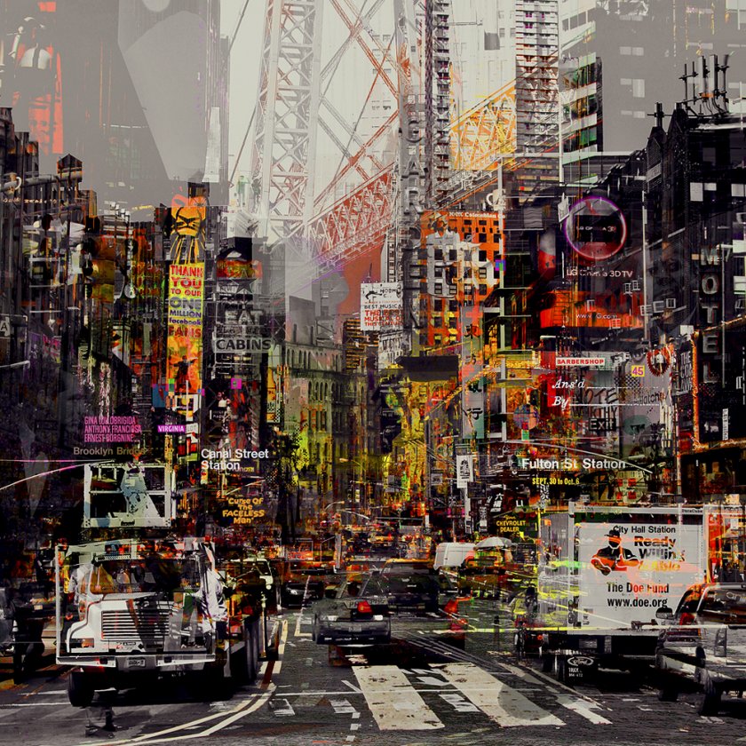Monotype van Paco Raphael. Het stuk is vervaardigd met een mix van computerkunst, grafische kunst, fotografie, verf en sjablonen.