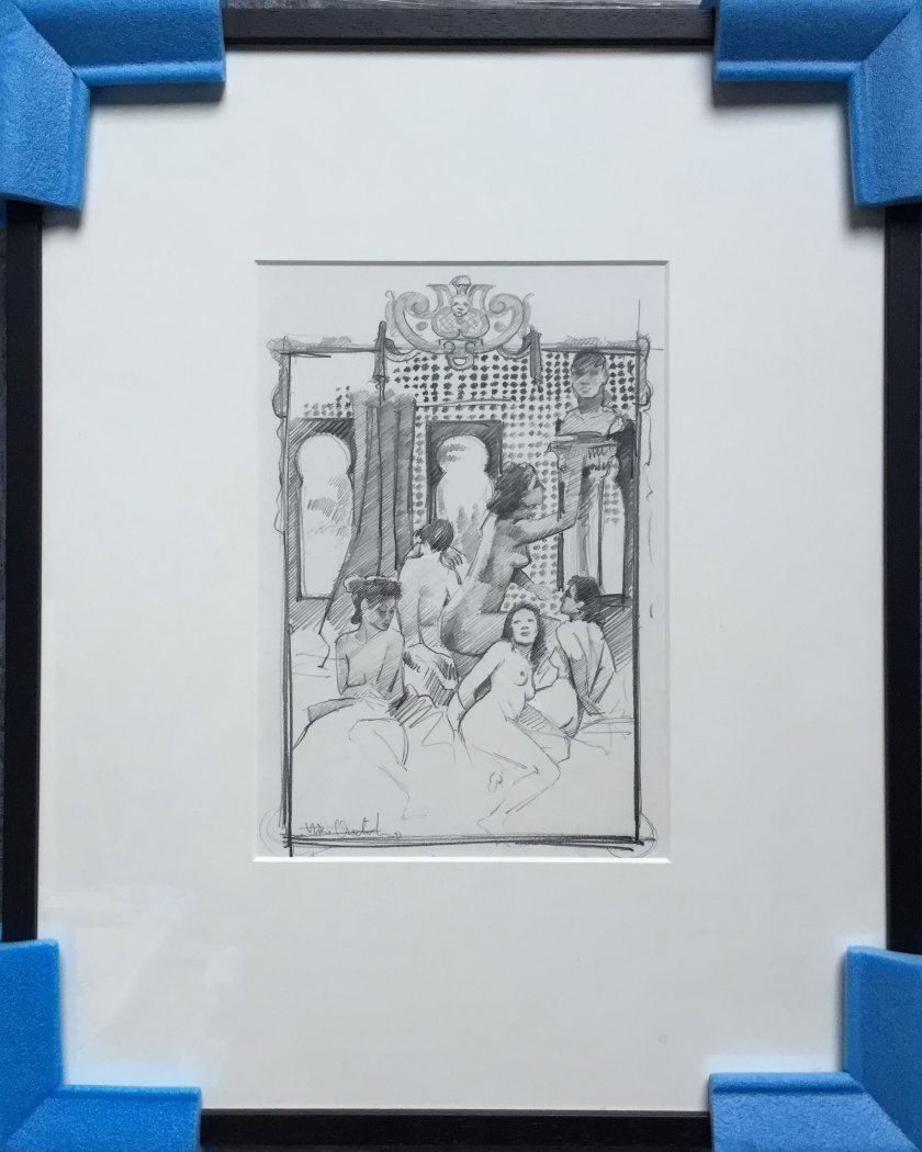 Fraaie originele schets van Nico Vrielink. De schets is door de kunstenaar gemaakt met potlood op Rives-papier in 1993. Nico Vrielink gebruikt zijn schetsen vaak als studies voor zijn originele schilderijen. De schetsen zijn prachtig verfijnd, zowel qua techniek als figuratie en de schetsen zijn door de kunstenaar zelf ingelijst in mooie bijpassende houten bloklijstjes. Indien u wenst kunnen wij u ook grotere en meer gedetaileerde foto’s van de schetsen mailen.