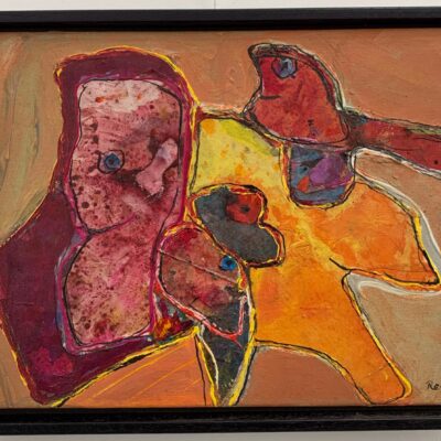 Dit werk is er 1 uit een serie van middelgrote werken die weer allemaal zijn gemaakt met gemengde techniek op linnen. Prachtig kleurgebruik en combinatie van technieken.