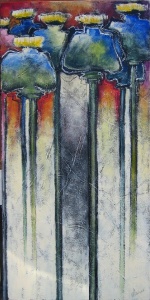 Origineel werk van Carla Raadsveld op een linnen box van 10 cm dik! De kunstenares bewerkt het linnen met diverse materialen waar overheen ze het schilderij vervaardigd. Het originele werk van Carla Raadsveld krijgt daardoor een prachtig doorwerkt uiterlijk!